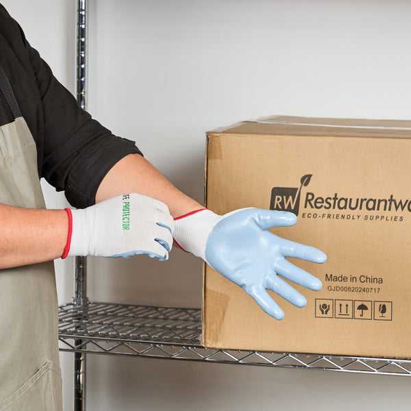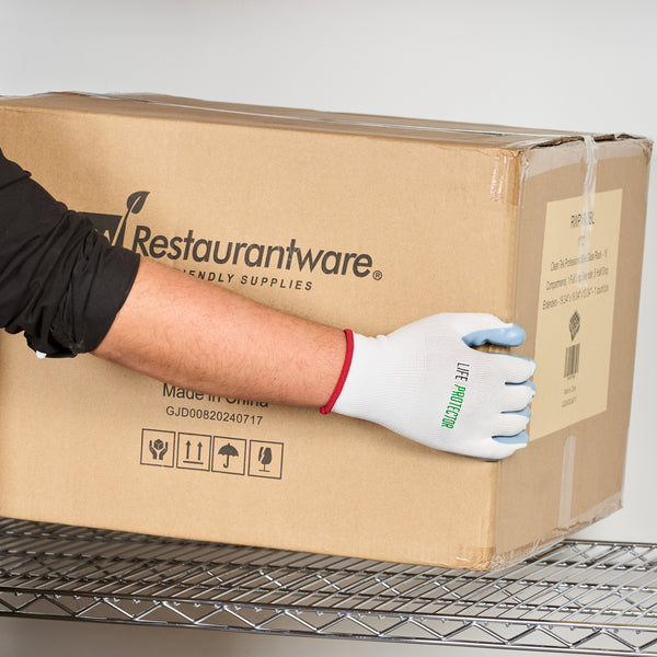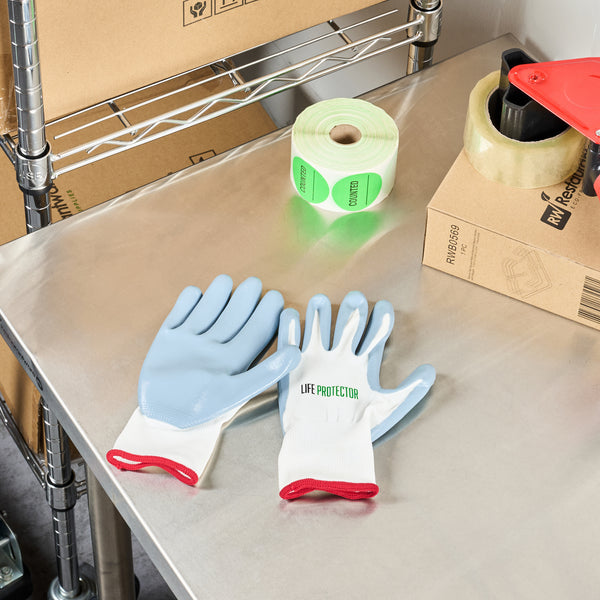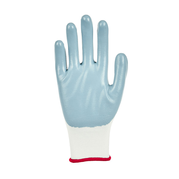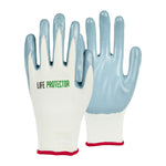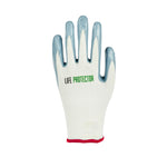 Equip your team with our Life Protector White Nylon Small Work Gloves. These heavy-duty gloves feature a flat nitrile palm coating, making them resistant to abrasions and tears. Designed with a superior grip, these white hand gloves are suitable for working on both dry and wet surfaces. Crafted with a breathable nylon lining, these protective gloves ensure your hands remain cool and comfortable during extended periods of wear. The 13-gauge thickness of these mechanic gloves offers an added layer of protection, making them perfect for tough working conditions. Designed for handling small parts, these white work gloves boast fine grip and dexterity, ideal for detailed assembly and repair work. For easy upkeep and maintenance, these white gloves are hand washable. The crisp white color of these work gloves lends a neat and stylish look to your workwear. These hand gloves measure 9 inches in length by 3.75 inches in width, providing a snug and secure fit for various hand sizes. Each order includes 10 pairs of small work gloves.