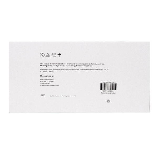 Take your food cleanliness to the next level with our LOW DERMA™ Blackberry Large Nitrile Gloves. Made from nitrile, these LOW DERMA™ disposable gloves have a Dermatest ® 5-star seal certification and comply with FDA regulations. These blackberry gloves are powder-free and latex-free to help protect your hands from hypersensitivity. To avoid the hassle of figuring out which gloves go on which hand, these nitrile gloves are ambidextrous. These low dermatitis potential gloves provide all-around protection from Type I and Type IV hypersensitivity. Featuring textured fingertips, these janitorial gloves have added grip for a secure hold over slippery food. The dispensing box of these hypoallergenic gloves allows them to be easily stored and accessed. For a quick cleanup after use, these textured gloves are disposable. These non-sterile gloves do not contain natural rubber latex, sulfur, or accelerators. These powder-free nitrile gloves are large in size. Sold in a 100 count box. Gloves are not intended for medical use.