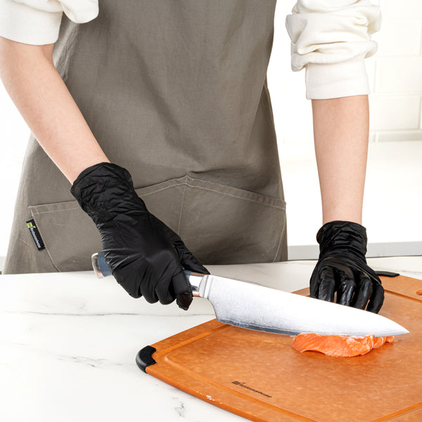 Featuring textured fingertips, these nitrile disposable gloves provide a secure grip when handling greasy foods. On top of that, the textured fingertip design increases one's grip while handling wet or greasy items.