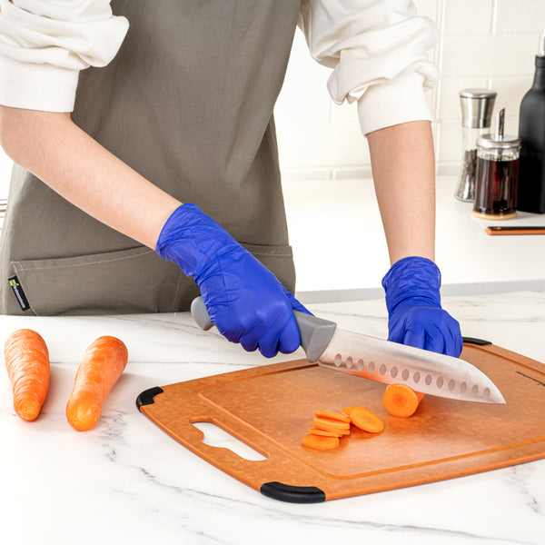 Constructed from nitrile, these serving gloves are food-grade and comply with federal regulations. You won’t have to worry about unwanted substances leeching into food while cooking or prepping.