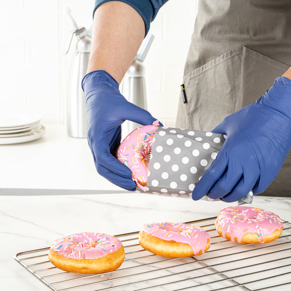 Featuring textured fingertips, these nitrile disposable gloves provide a secure grip when handling greasy foods. On top of that, the textured fingertip design increases one's grip while handling wet or greasy items.