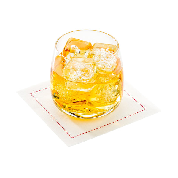 ECRU COTTON COCKTAIL NAPKIN - RED STITCH, ORGANIC, DISPOSABLE
