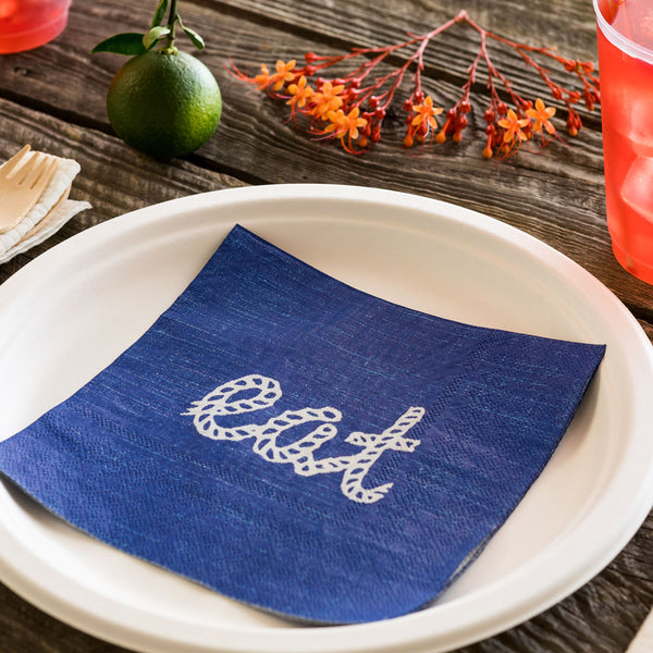 NAVY PAPER LUNCHEON NAPKIN - EAT, ROPE SCRIPT