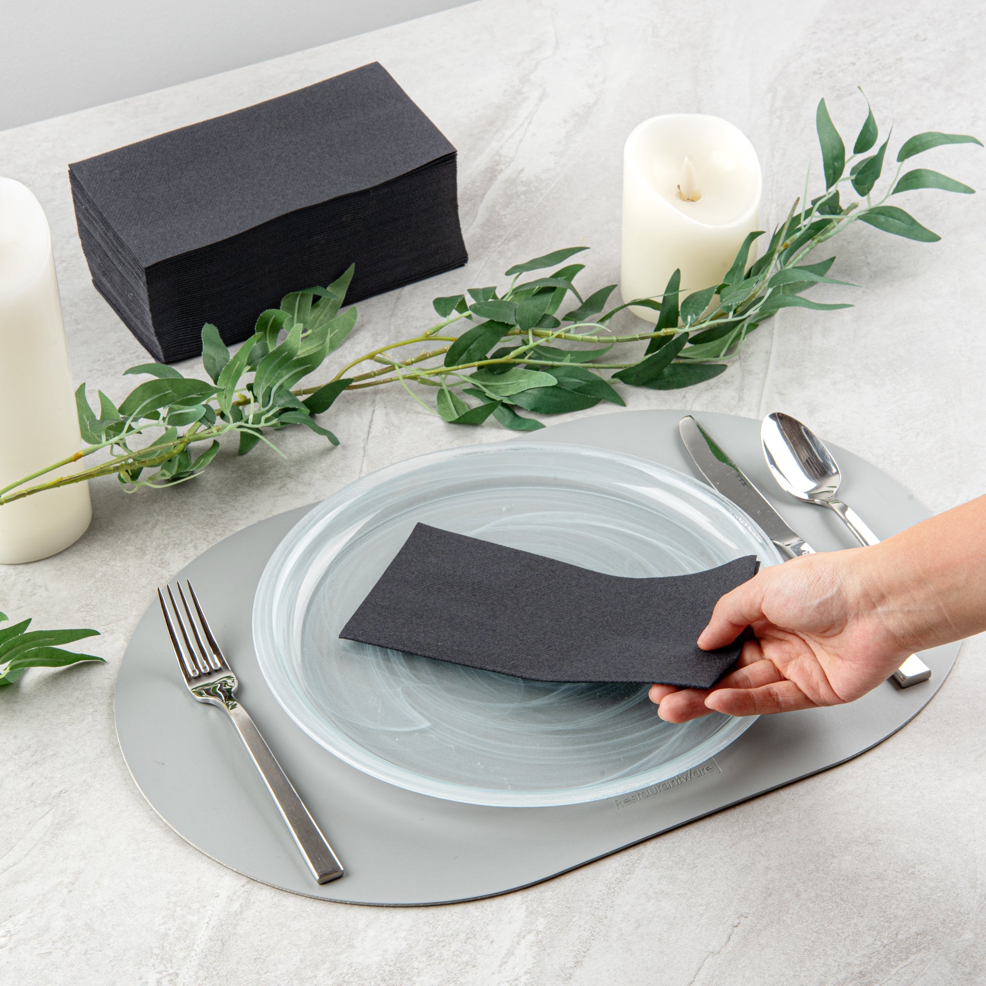 BLACK PAPER LINEN-FEEL GUEST TOWEL/NAPKIN - AIR LAID