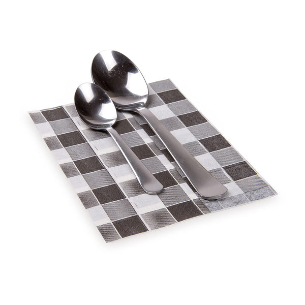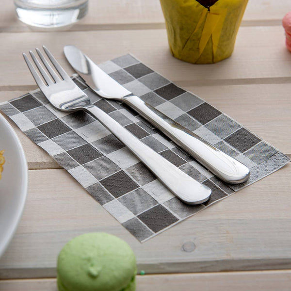 These picnic print disposable napkins are essential to have on hand for all types of spills and messes. Measuring 7 inches by 13.5 inches unfolded, these paper napkins are perfect for use during lunch or dinner services at cafes, food trucks, and catering companies. Their embossed diamond pattern provides a subtle hint of luxury, while their 1-ply paper construction shows your customers that you care about the environment. These black and white gingham printed napkins can be easily dressed down for use at a local BBQ joint -- or stylishly dressed up for use at an upscale French bistro! To save you time, these paper napkins will arrive in conveniently folded, ready-to-use 4.7-inch by 6.5-inch rectangles. These bulk napkins are shipped in a 100 count box.
