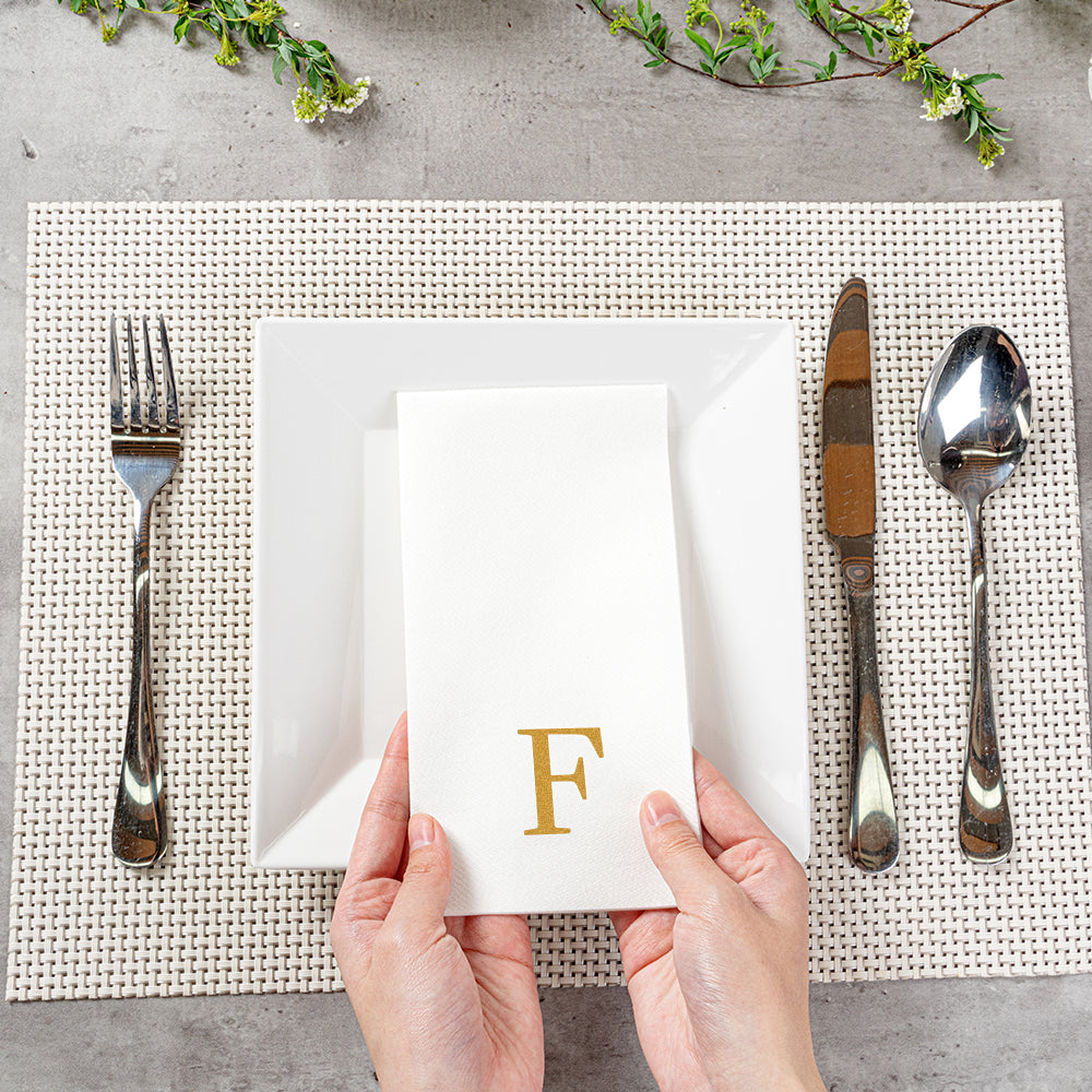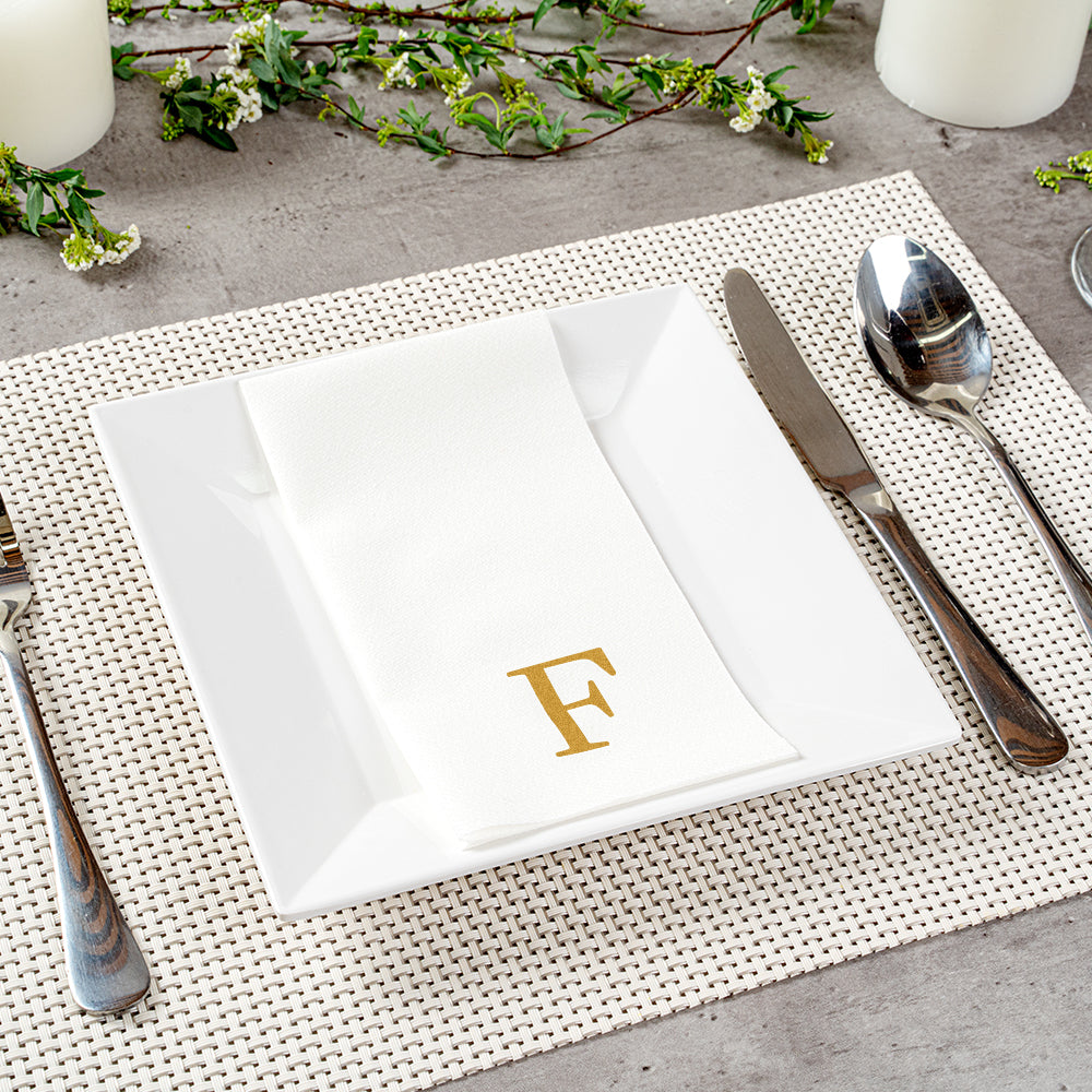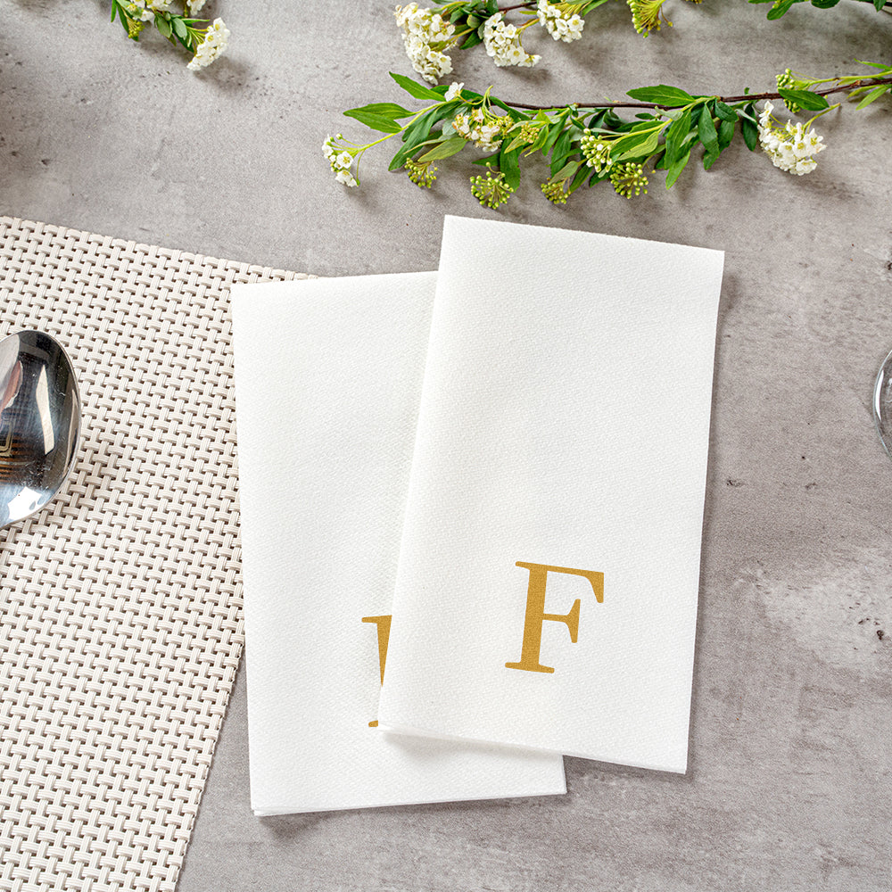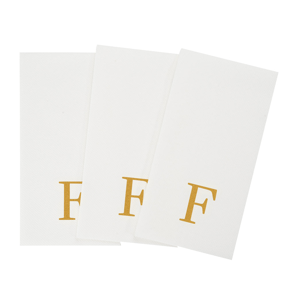 GOLD LETTER F PAPER LINEN-FEEL GUEST TOWEL/NAPKIN - SANS SERIF FONT