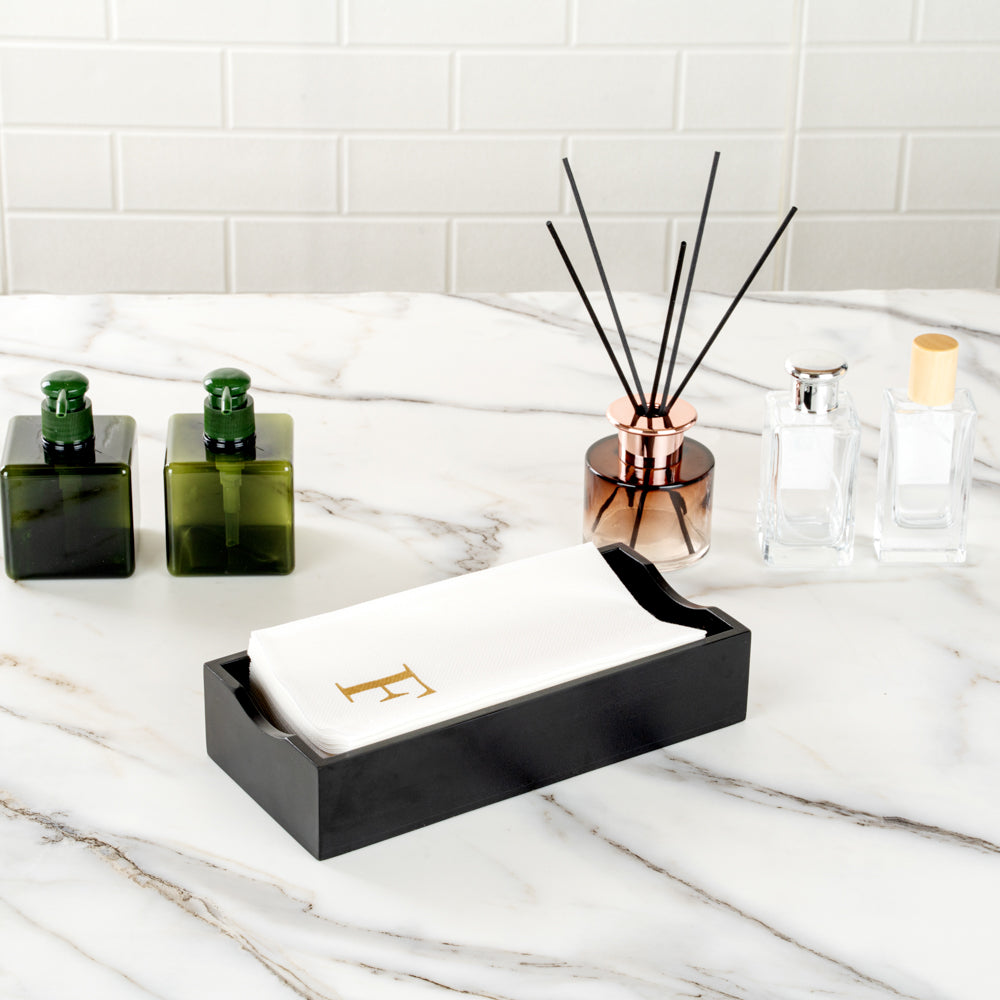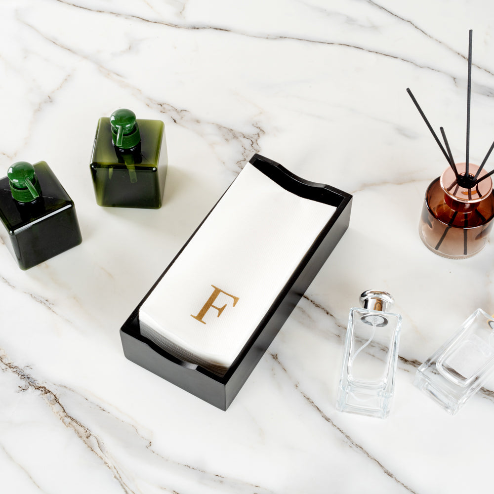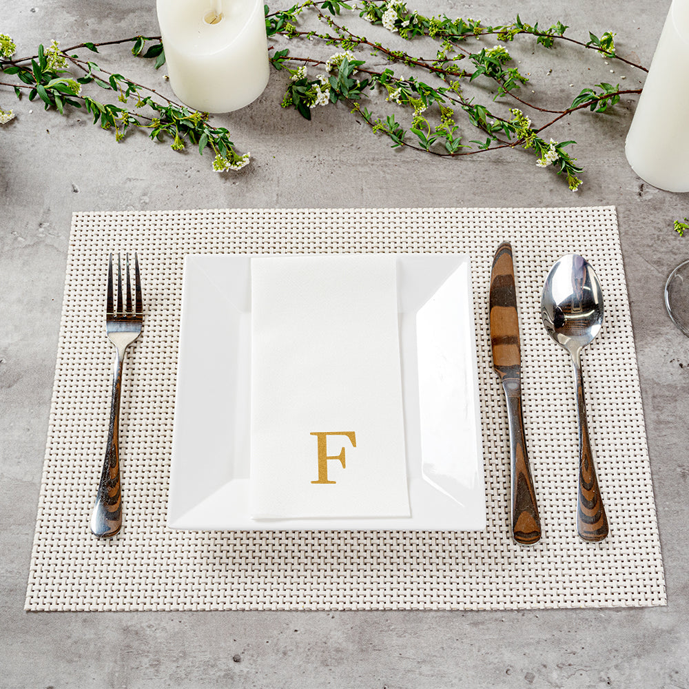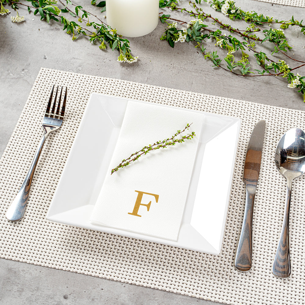 GOLD LETTER F PAPER LINEN-FEEL GUEST TOWEL/NAPKIN - SANS SERIF FONT