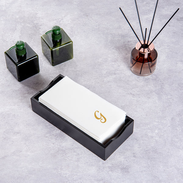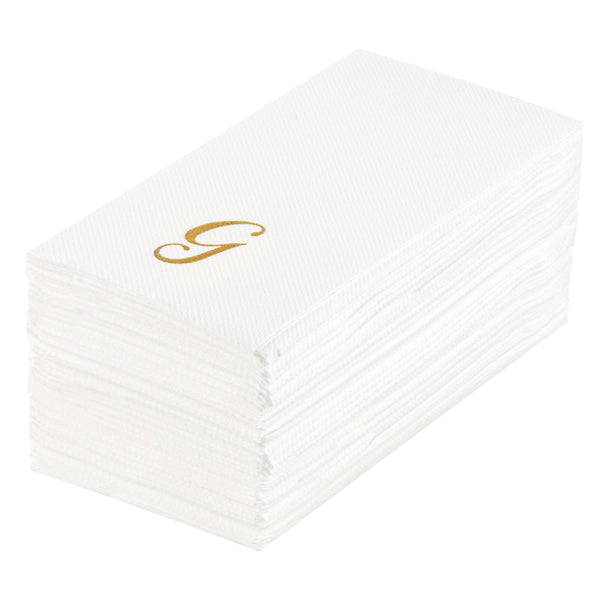 Luxenap Rectangle Gold Letter G White Paper Linen-Feel Guest Towel / Napkin - Air Laid, Cursive Font - 15 3/4