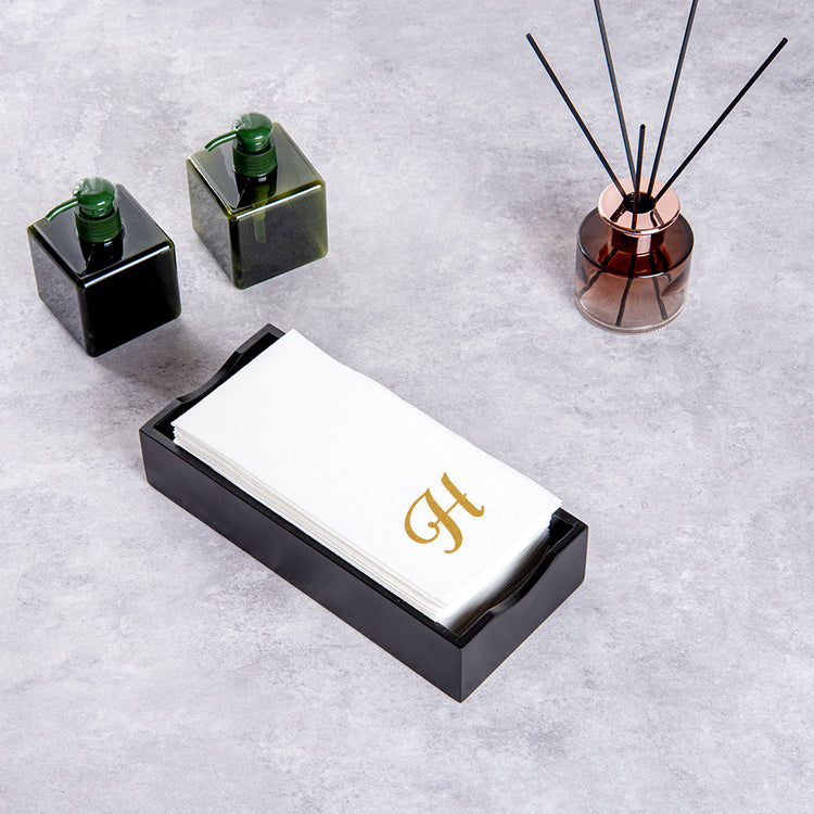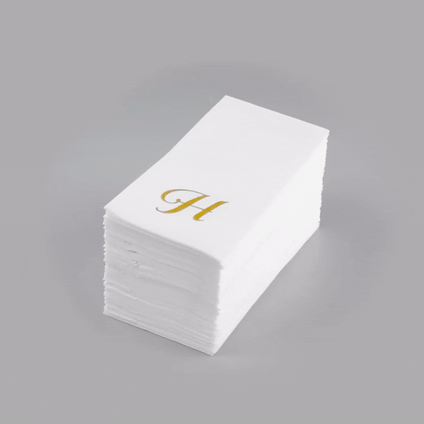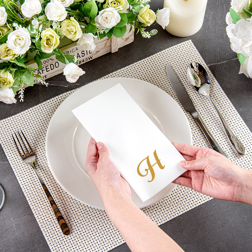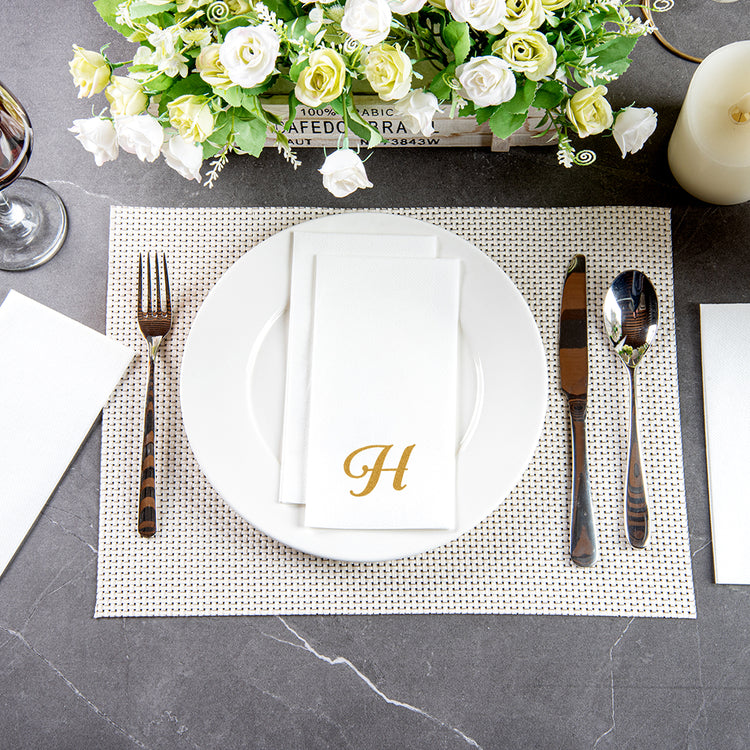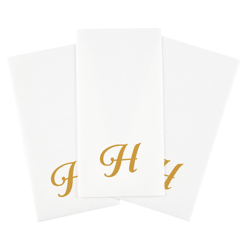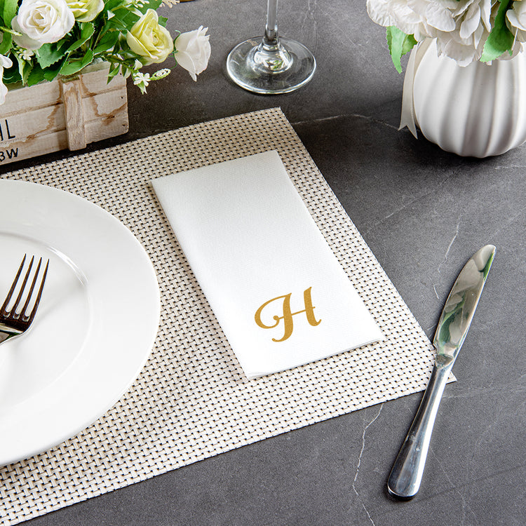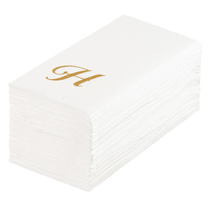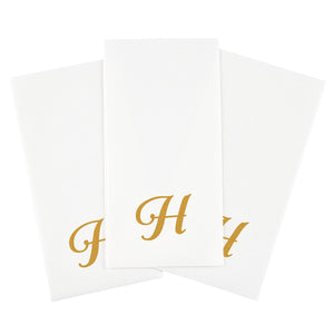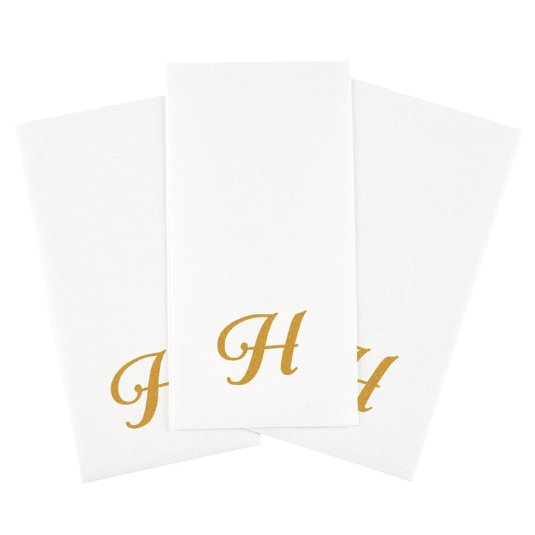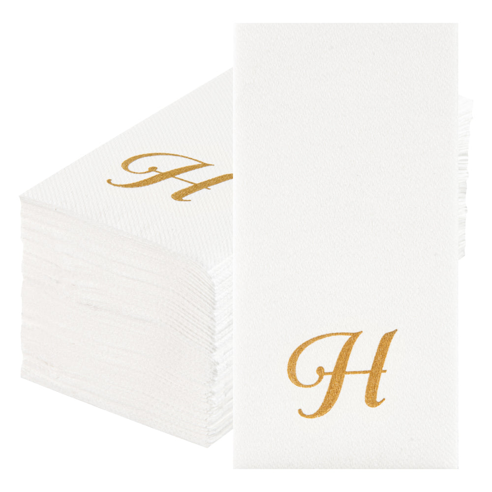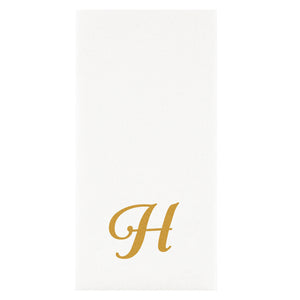 Luxenap Rectangle Gold Letter H White Paper Linen-Feel Guest Towel / Napkin - Air Laid, Cursive Font - 15 3/4
