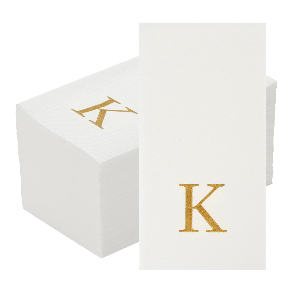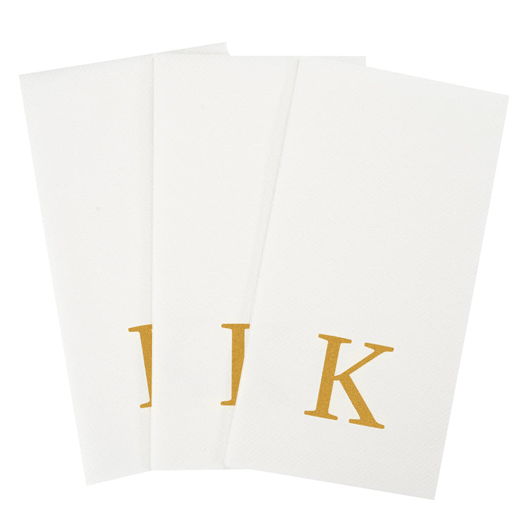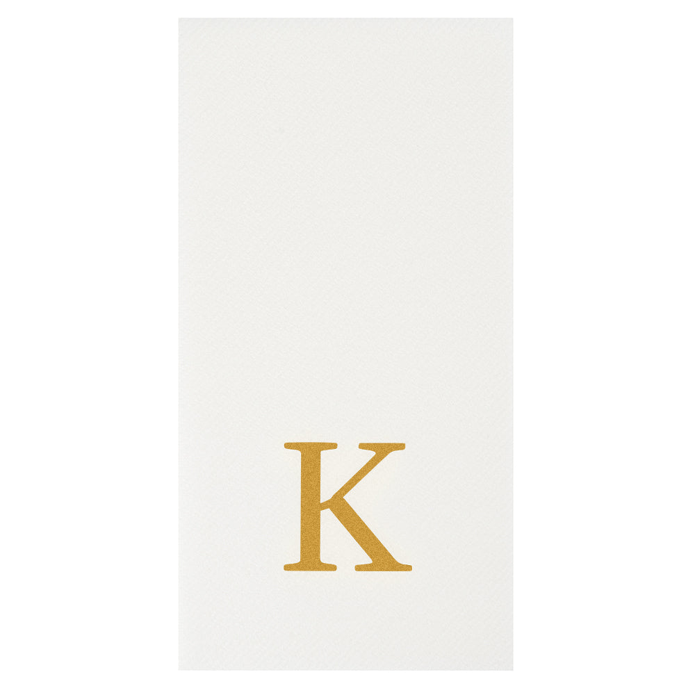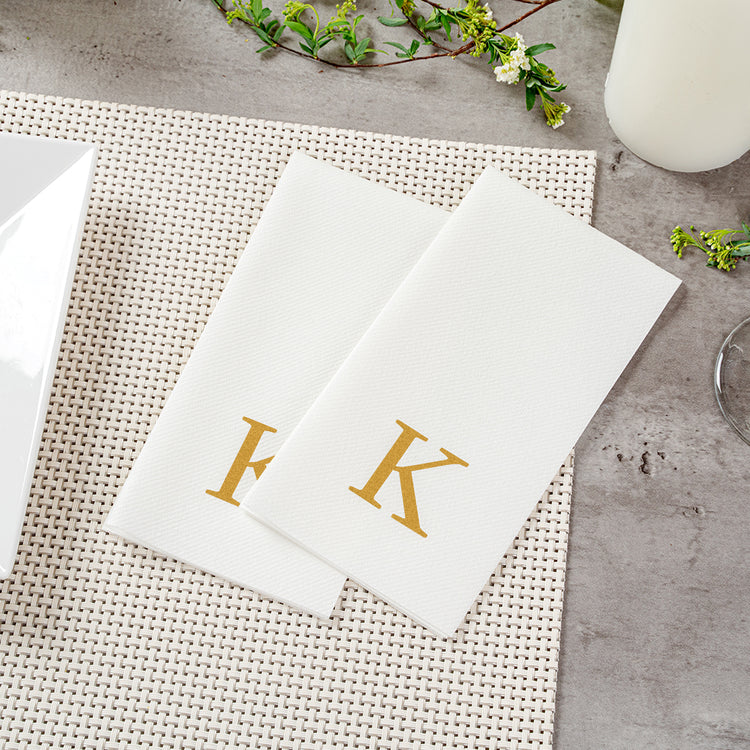 GOLD LETTER K PAPER LINEN-FEEL GUEST TOWEL/NAPKIN - SANS SERIF FONT
