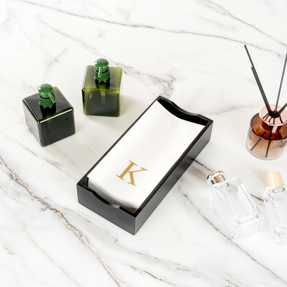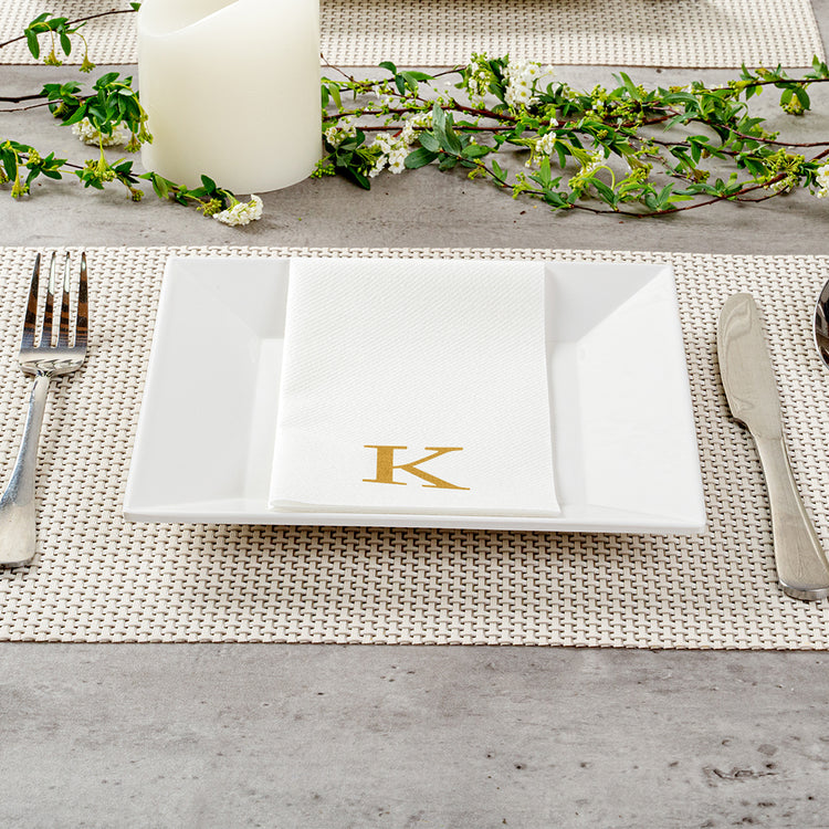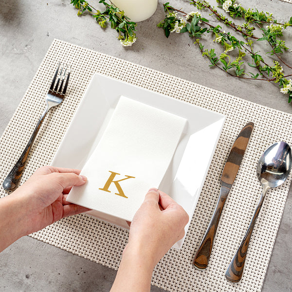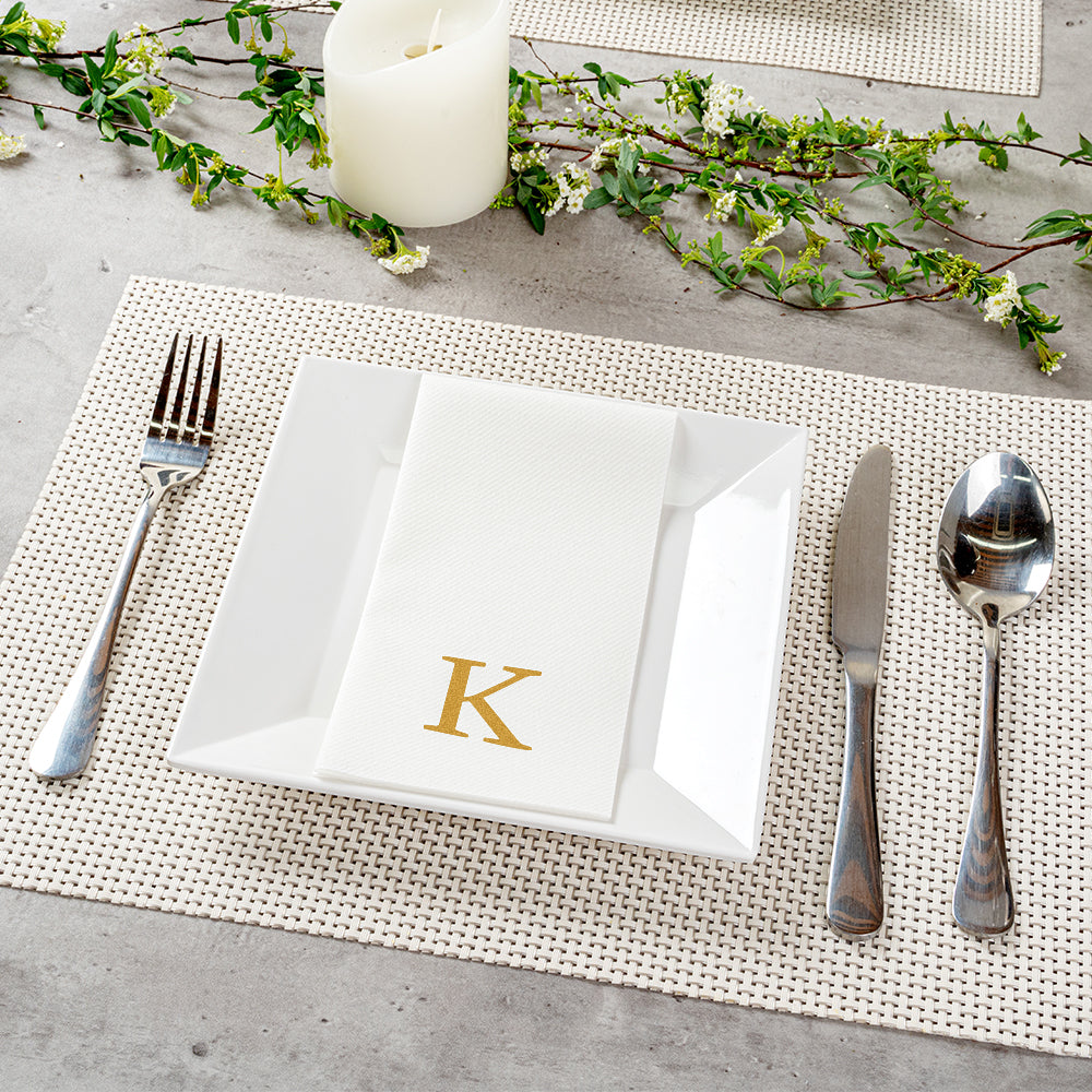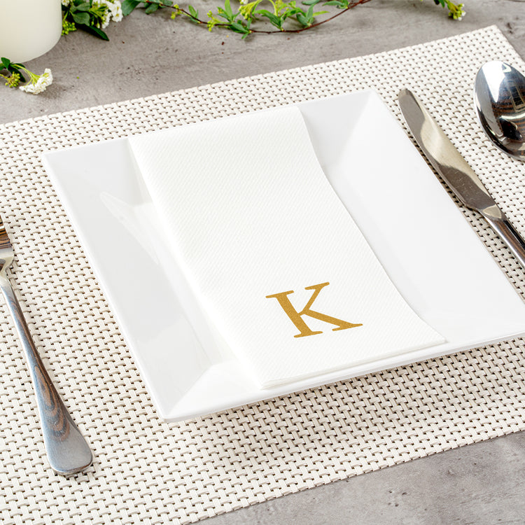 GOLD LETTER K PAPER LINEN-FEEL GUEST TOWEL/NAPKIN - SANS SERIF FONT