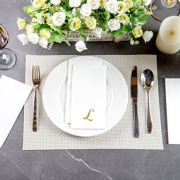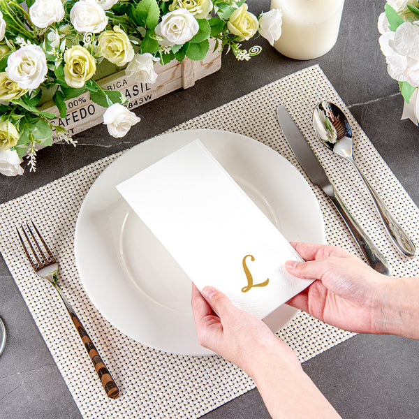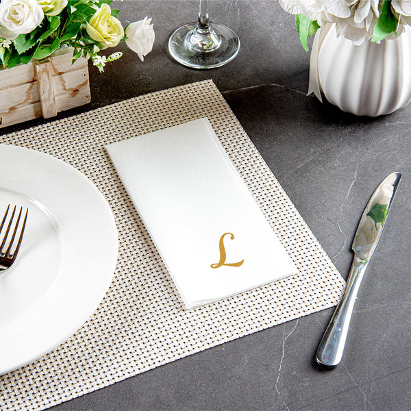 Elevate your dining experience with linen-feel napkins that exude sophistication. Luxenap Absorbent Linen-Feel Napkins are crafted from premium air-laid paper, offering a luxurious alternative that enhances upscale dining experiences. These luxury paper napkins boast exceptional absorbency, measuring 15.75 inches in length and 7.87 inches in width, making them ideal for efficiently tackling spills and maintaining a pristine dining environment. Adorned with elegant gold lettering, these personalized napkins add a sophisticated touch to any event, ensuring a memorable and stylish setting. Made from biodegradable paper, they are environmentally friendly and cater to both hot and cold food applications, aligning with eco-conscious dining practices. Transform your table settings and impress guests with these versatile and compostable napkins. Each order includes 2000 Luxenap Absorbent Linen-Feel Napkins.