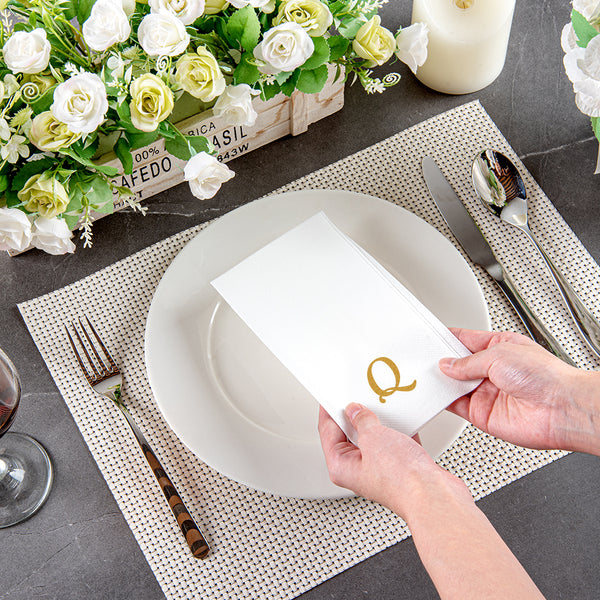 Create an upscale dining experience with our Luxenap Linen-Feel Napkins. These disposable napkins, measuring 15.75 inches by 7.87 inches, offer a luxurious guest experience, making them an ideal choice for any refined foodservice setting. Crafted from premium air-laid paper, they boast exceptional absorbency to efficiently tackle spills, ensuring your tables remain pristine. The elegant gold lettering on each of these luxury paper napkins adds a sophisticated touch to your table settings, elevating the visual appeal of any dining occasion. Designed from biodegradable paper, these napkins align with sustainable practices without compromising quality. Elevate your dining ambiance effortlessly with these versatile napkins. Each order includes 2000 Luxenap Linen-Feel Napkins.