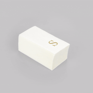 Enhance guest comfort with eco-friendly, absorbent tableware. The Luxenap Rectangle Gold Letter S White Paper Linen-Feel Guest Towel / Napkin offers a luxurious alternative to conventional options, featuring airlaid texture that enhances absorption for effective spill management. With elegant gold printing, this linen-feel napkin elevates presentations at upscale events, making it ideal for sophisticated dining experiences. Made from air-laid paper, these napkins measure 15.75 inches by 7.87 inches, providing ample coverage and ensuring practicality at the dining table. The biodegradable design supports eco-friendly disposal practices, aligning with environmentally-conscious operations. Whether used as a paper napkin or as a disposable guest towel, these items provide versatility and convenience for various foodservice settings. Facilitate quick and easy cleanup with this sustainable choice. Sold in a 50 count box.