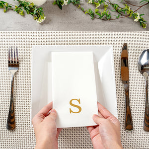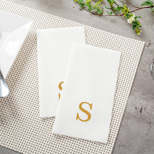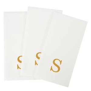 GOLD LETTER S PAPER LINEN-FEEL GUEST TOWEL/NAPKIN - SANS SERIF FONT