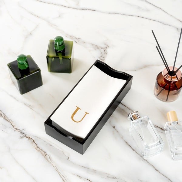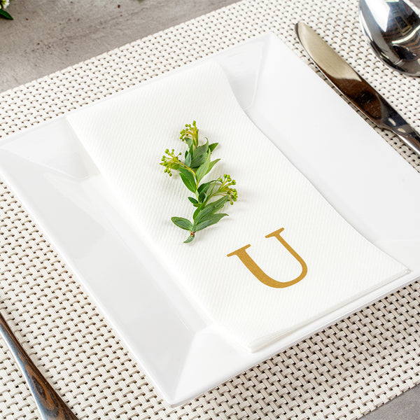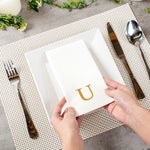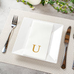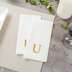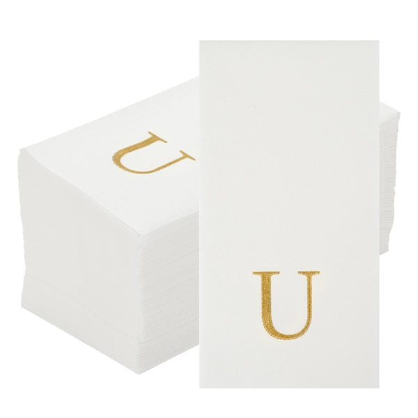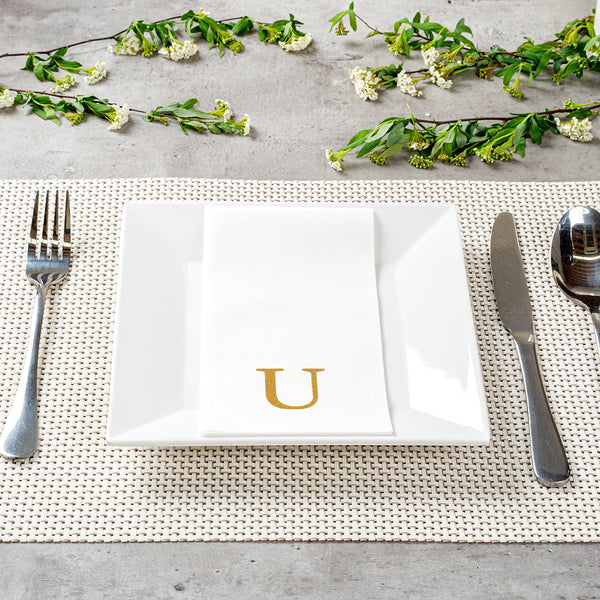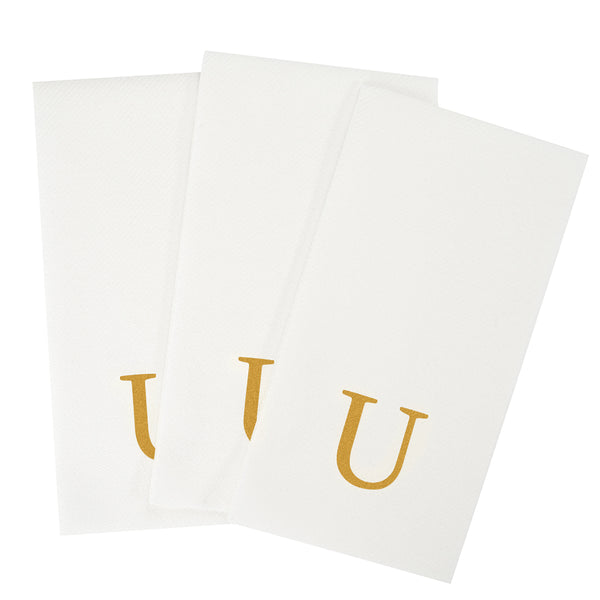GOLD LETTER U PAPER LINEN-FEEL GUEST TOWEL/NAPKIN - SANS SERIF FONT