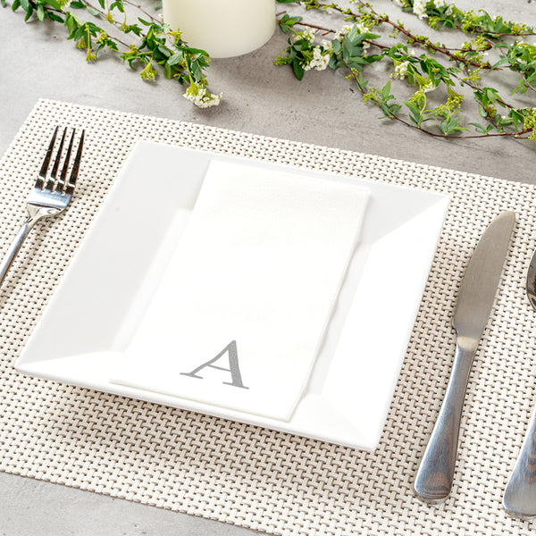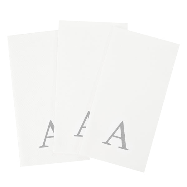 SILVER LETTER A PAPER LINEN-FEEL GUEST TOWEL/NAPKIN - SANS SERIF FONT