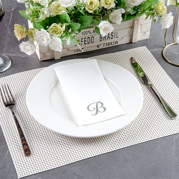 SILVER LETTER B PAPER LINEN-FEEL GUEST TOWEL/NAPKIN - CURSIVE FONT