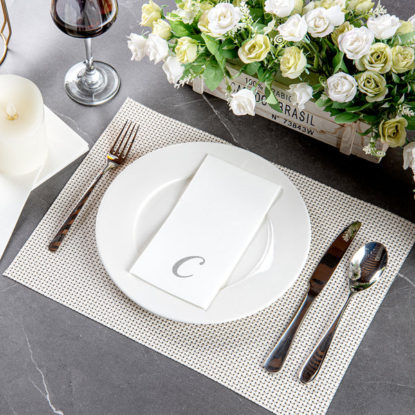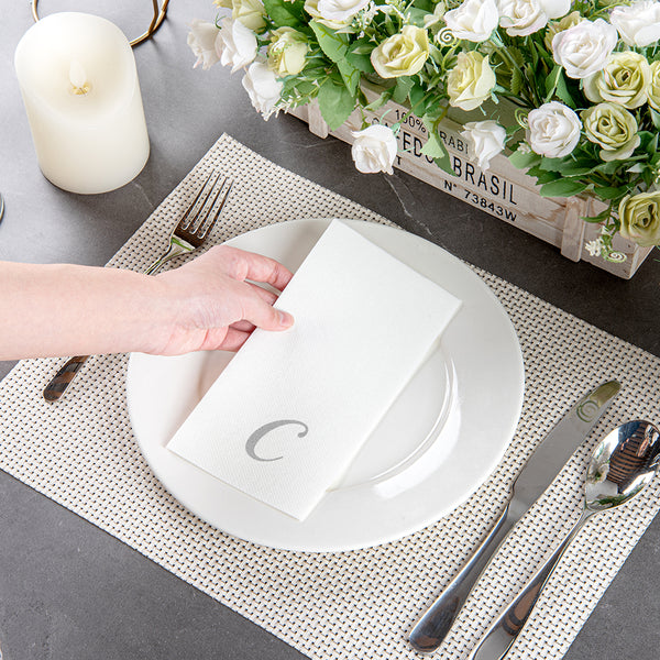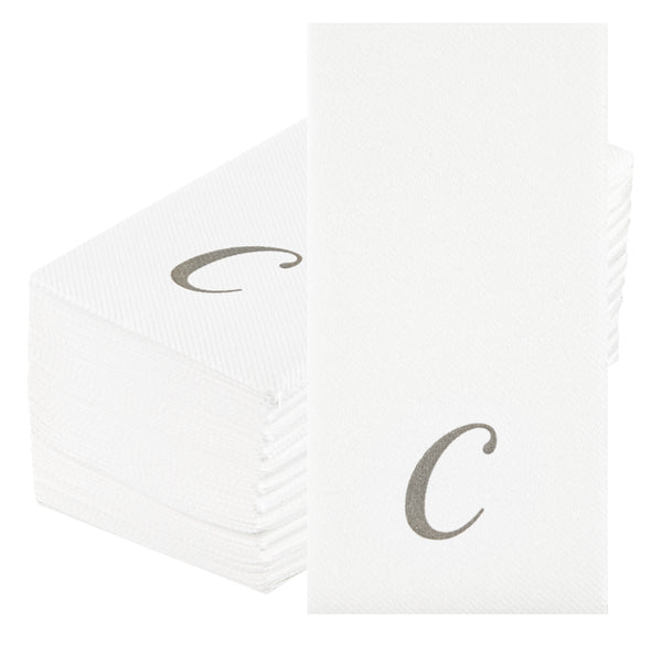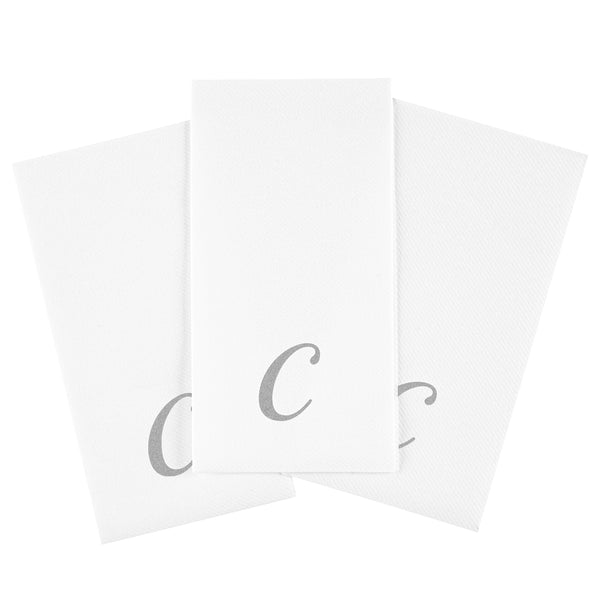 SILVER LETTER C PAPER LINEN-FEEL GUEST TOWEL/NAPKIN - CURSIVE FONT