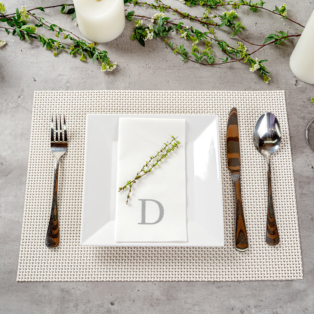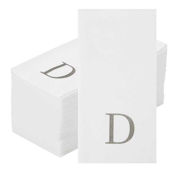 SILVER LETTER D PAPER LINEN-FEEL GUEST TOWEL/NAPKIN - SANS SERIF FONT