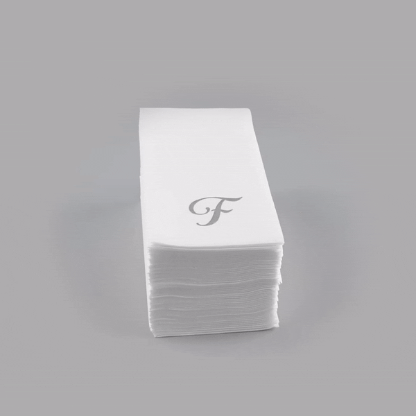 SILVER LETTER F PAPER LINEN-FEEL GUEST TOWEL/NAPKIN - CURSIVE FONT