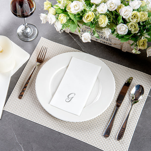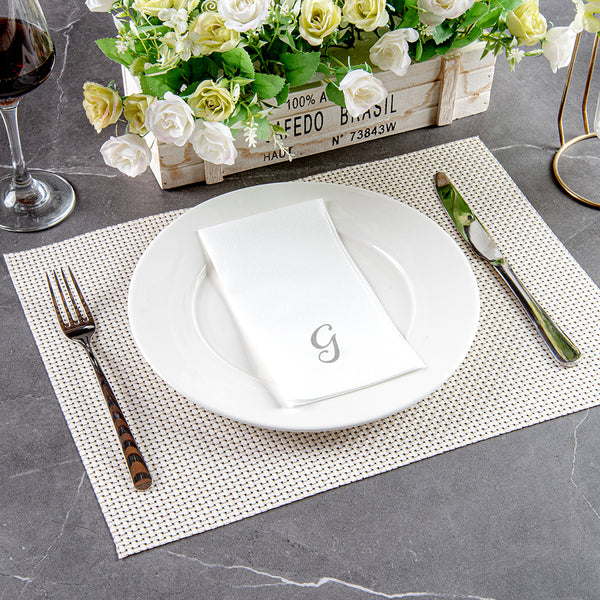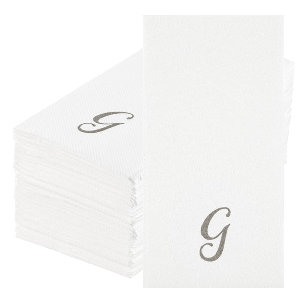 SILVER LETTER G PAPER LINEN-FEEL GUEST TOWEL/NAPKIN - CURSIVE FONT
