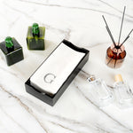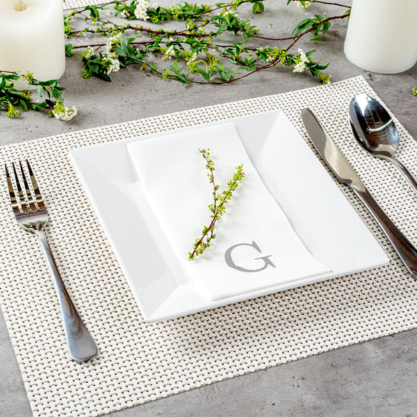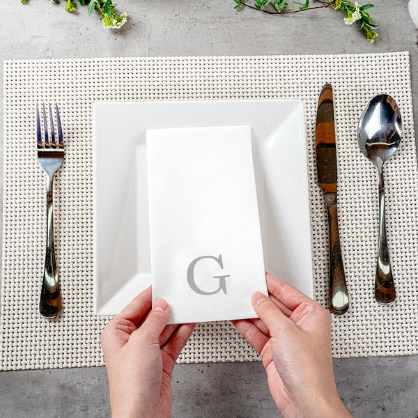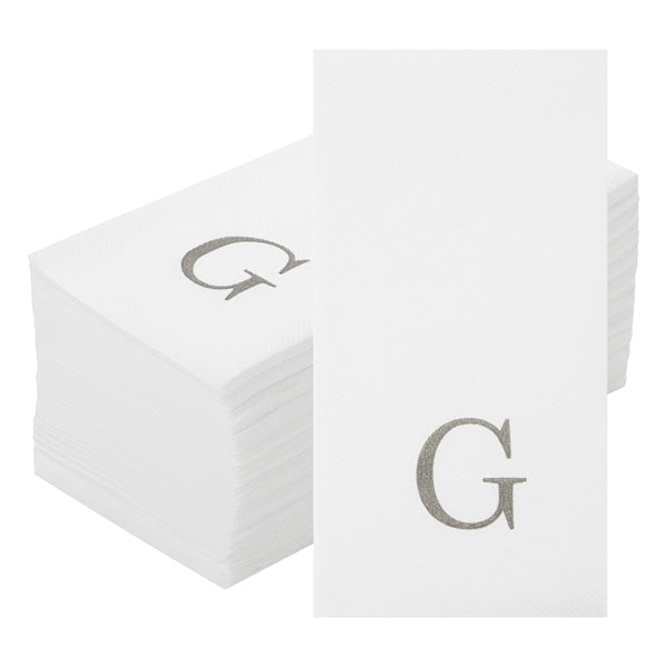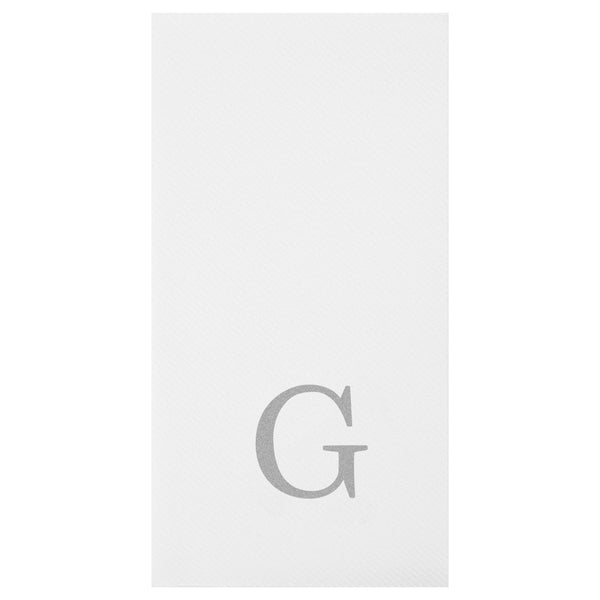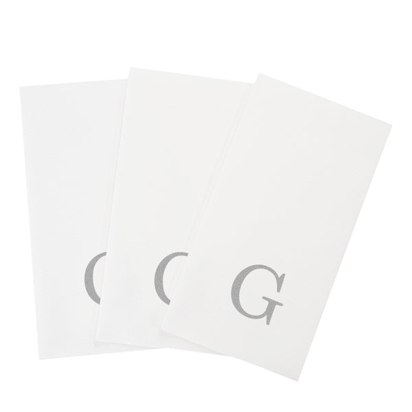 SILVER LETTER G PAPER LINEN-FEEL GUEST TOWEL/NAPKIN - SANS SERIF FONT