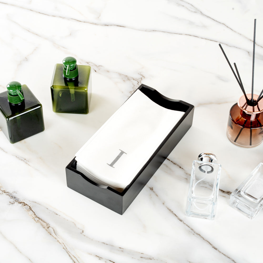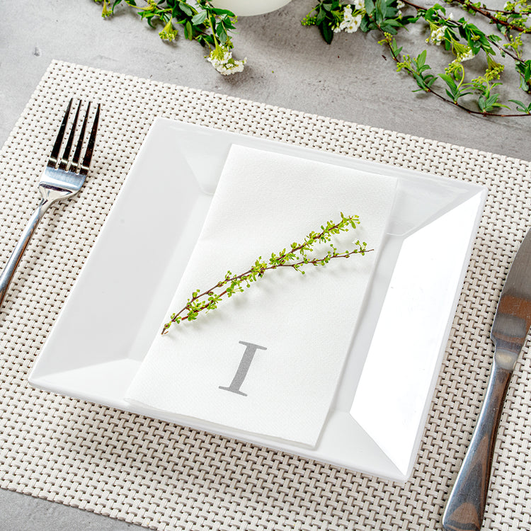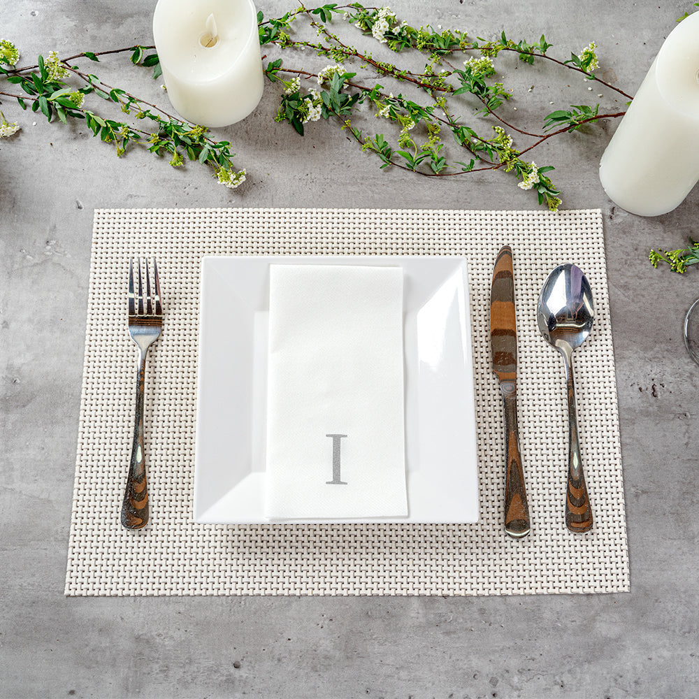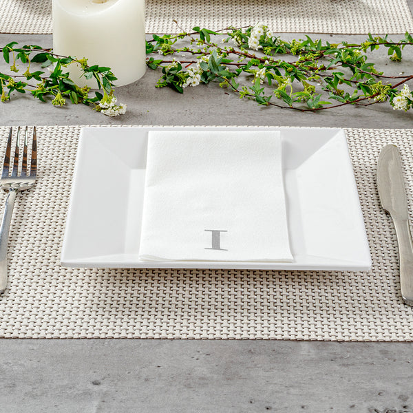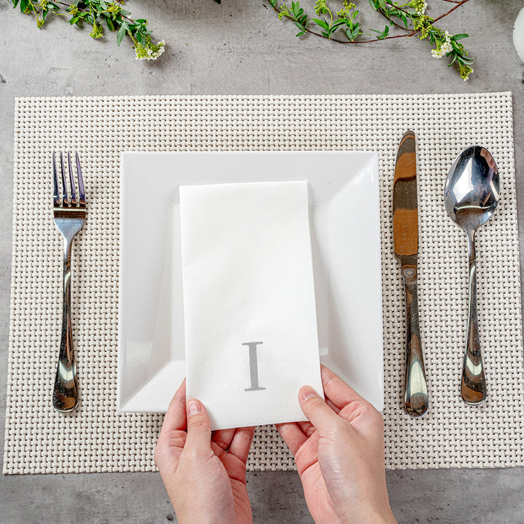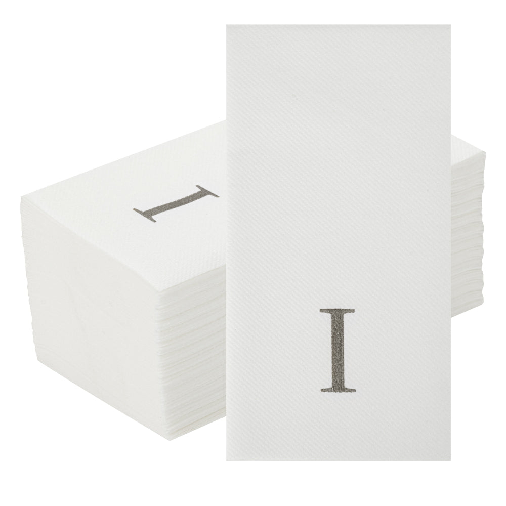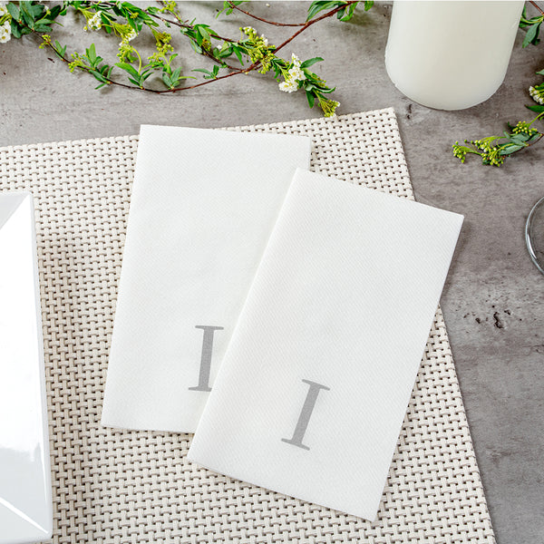 SILVER LETTER I PAPER LINEN-FEEL GUEST TOWEL/NAPKIN - SANS SERIF FONT