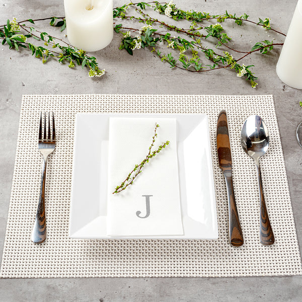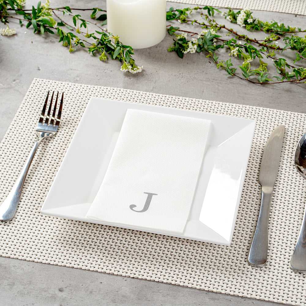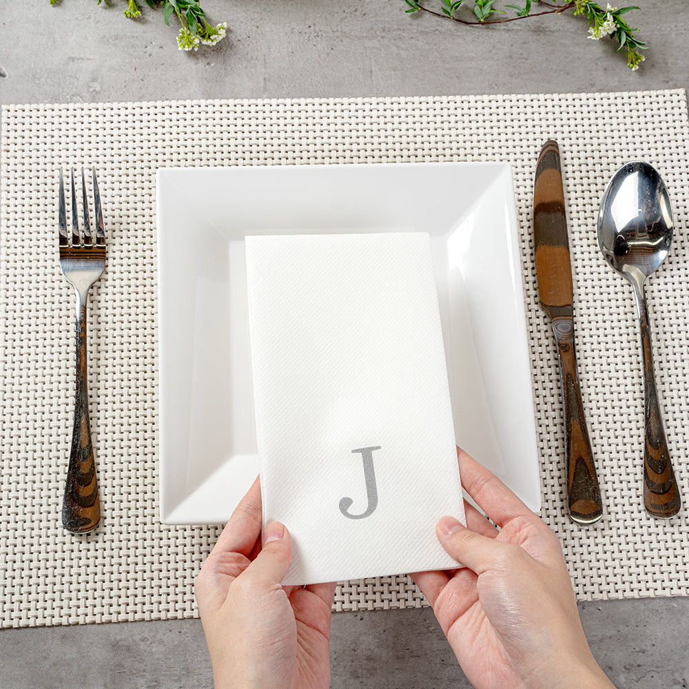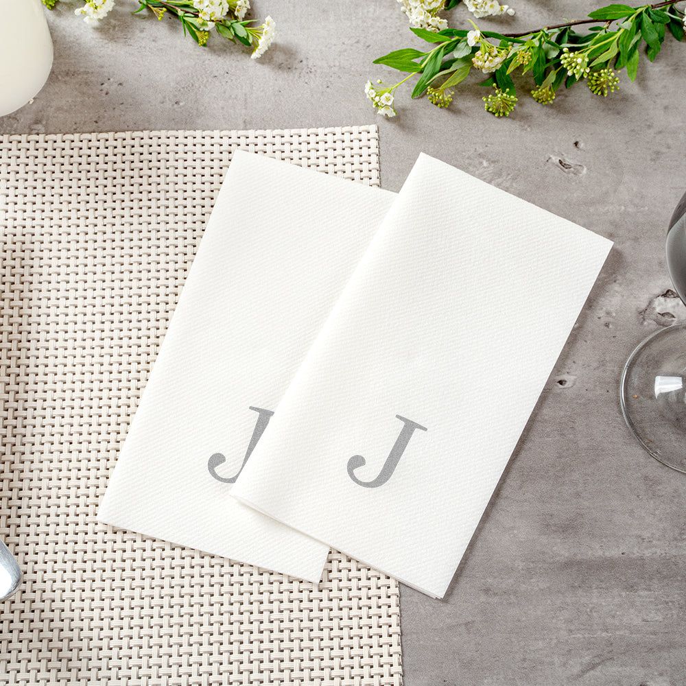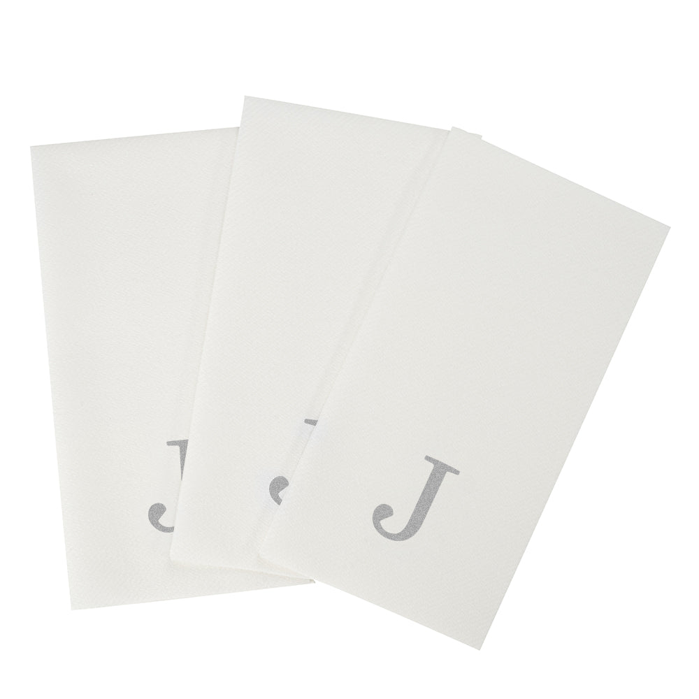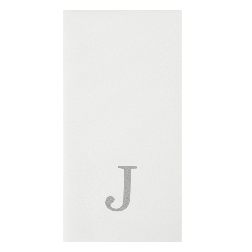 SILVER LETTER J PAPER LINEN-FEEL GUEST TOWEL/NAPKIN - SANS SERIF FONT