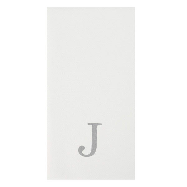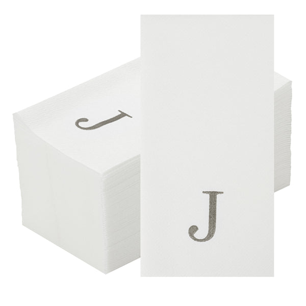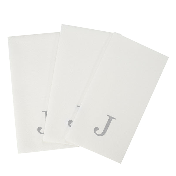 SILVER LETTER J PAPER LINEN-FEEL GUEST TOWEL/NAPKIN - SANS SERIF FONT