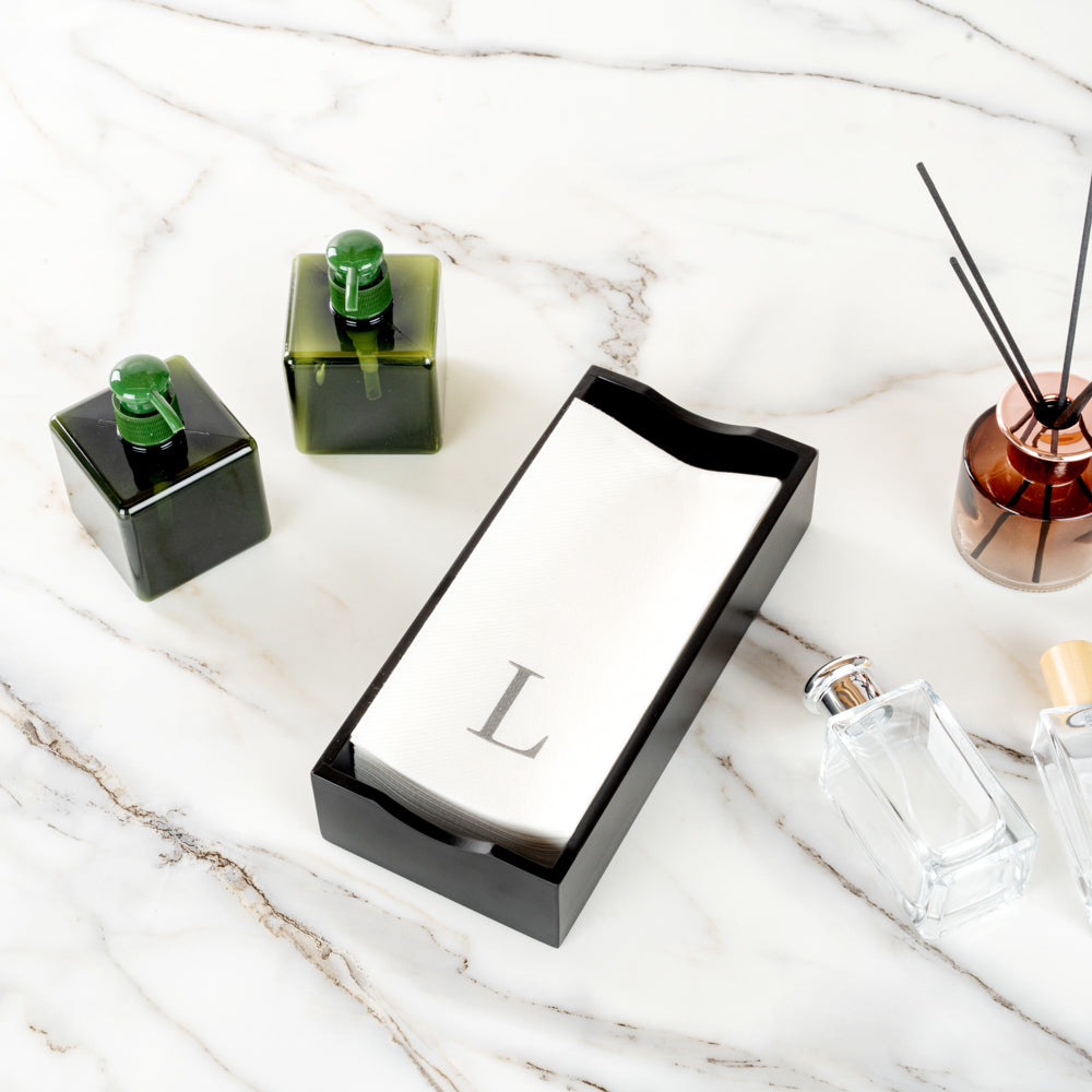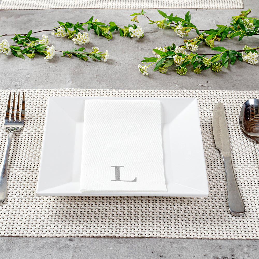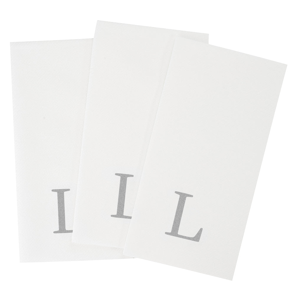 SILVER LETTER L PAPER LINEN-FEEL GUEST TOWEL/NAPKIN - SANS SERIF FONT