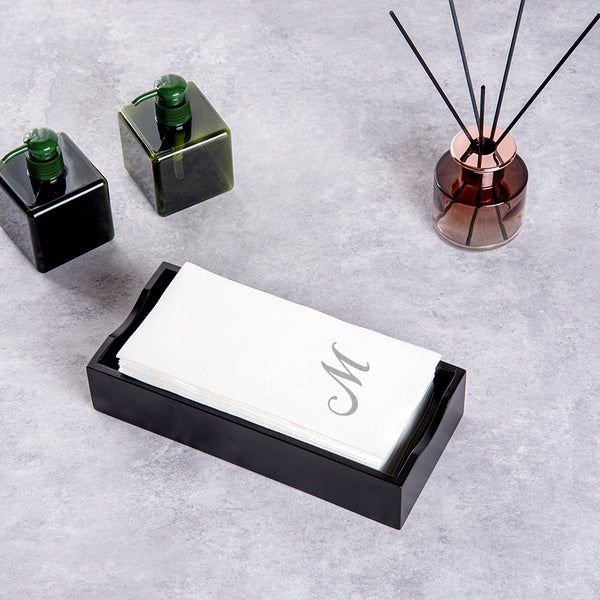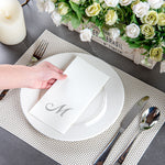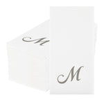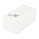 SILVER LETTER M PAPER LINEN-FEEL GUEST TOWEL/NAPKIN - CURSIVE FONT