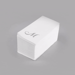 Elevate your dining experience with a touch of elegance. Luxenap Rectangle Silver Letter M White Paper Linen-Feel Guest Towel / Napkins provide a luxurious alternative to conventional options, featuring a generous 15.75 inches by 7.87 inches size that enhances guest satisfaction. Crafted from premium air-laid paper, these disposable napkins boast exceptional absorbency to efficiently tackle spills, ensuring tables remain pristine throughout service. Their elegant silver lettering adds a sophisticated touch, making them ideal for upscale events and settings. These airlaid napkins are not only absorbent but also biodegradable, supporting environmentally conscious practices in your establishment. Upgrade your table settings effortlessly and impress customers looking for linen-feel napkins that combine functionality with style. Sold in a 2000 count box.
