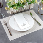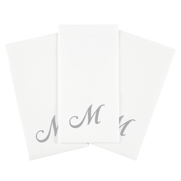 SILVER LETTER M PAPER LINEN-FEEL GUEST TOWEL/NAPKIN - CURSIVE FONT
