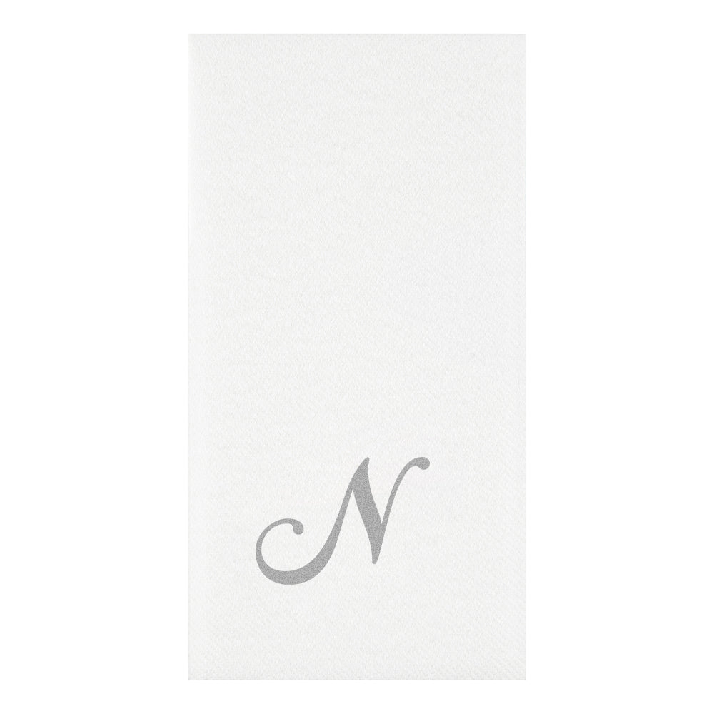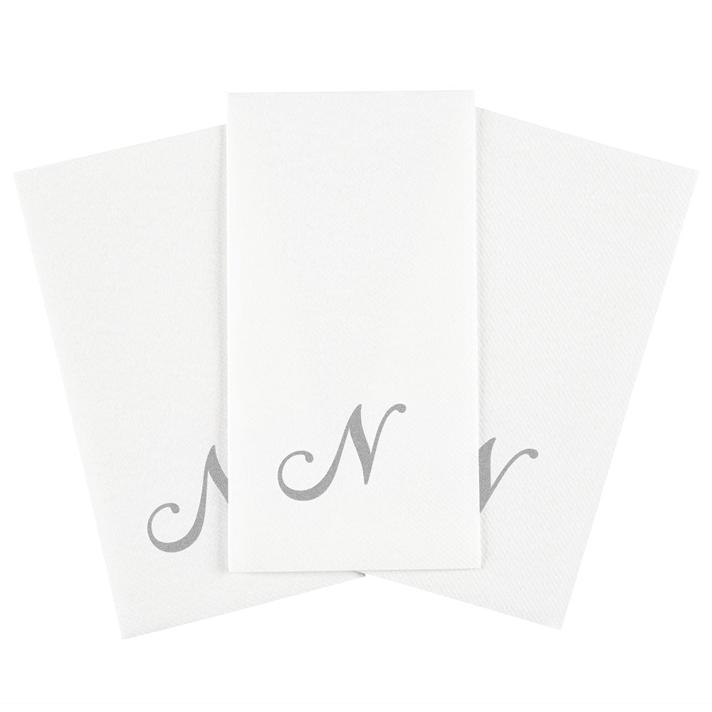 SILVER LETTER N PAPER LINEN-FEEL GUEST TOWEL/NAPKIN - CURSIVE FONT