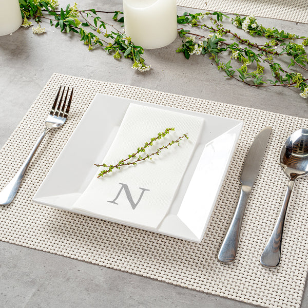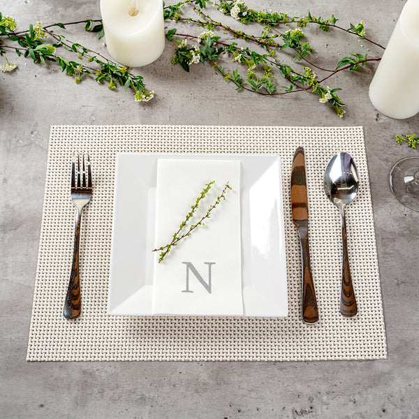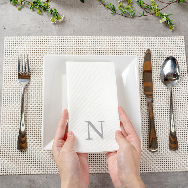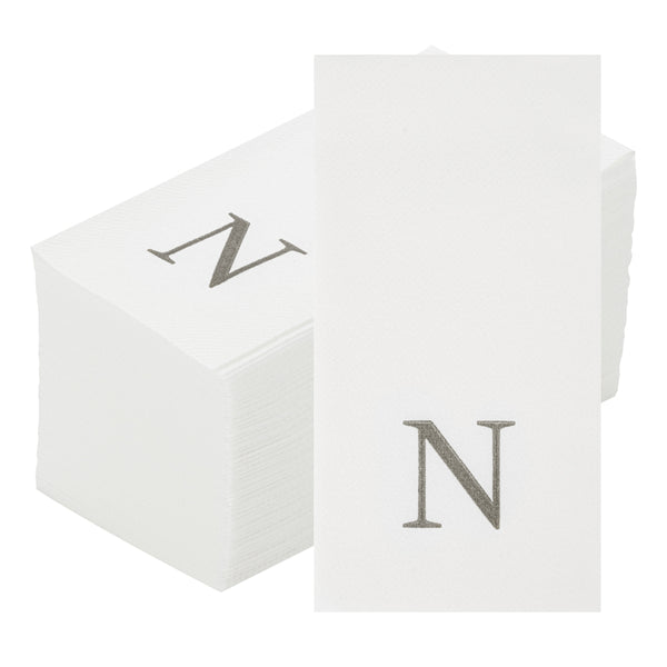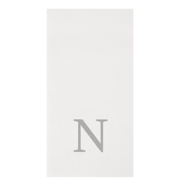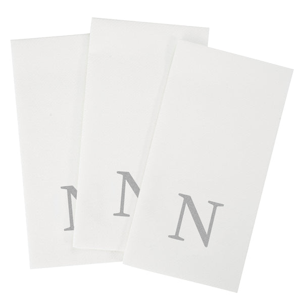 SILVER LETTER N PAPER LINEN-FEEL GUEST TOWEL/NAPKIN - SANS SERIF FONT