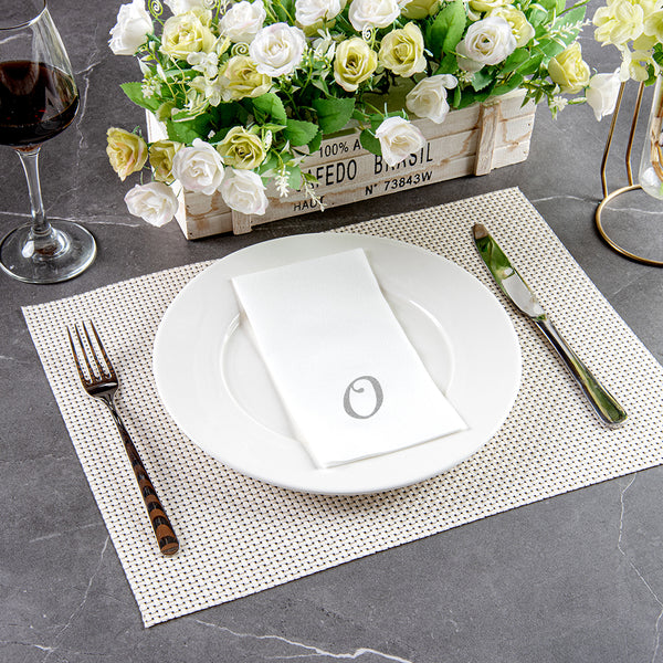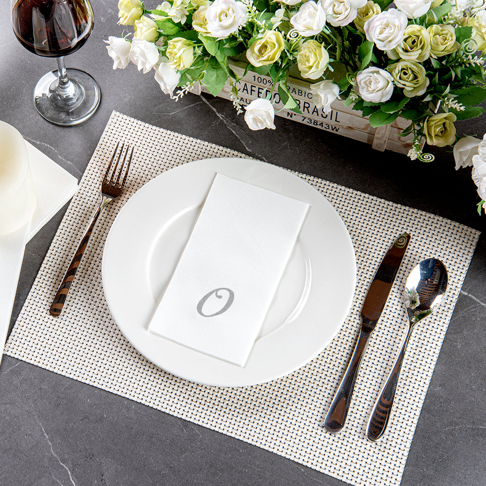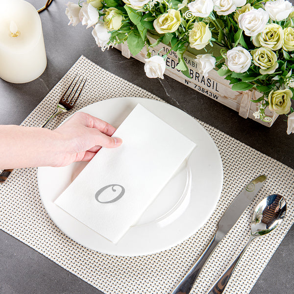 SILVER LETTER O PAPER LINEN-FEEL GUEST TOWEL/NAPKIN - CURSIVE FONT