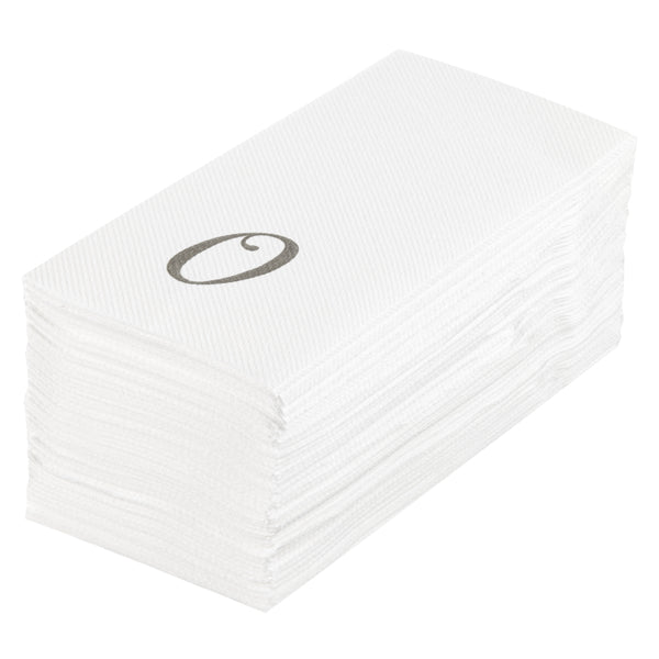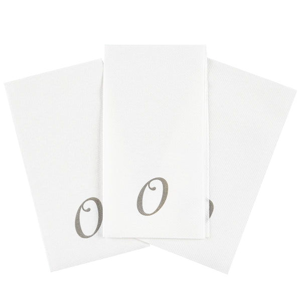 SILVER LETTER O PAPER LINEN-FEEL GUEST TOWEL/NAPKIN - CURSIVE FONT