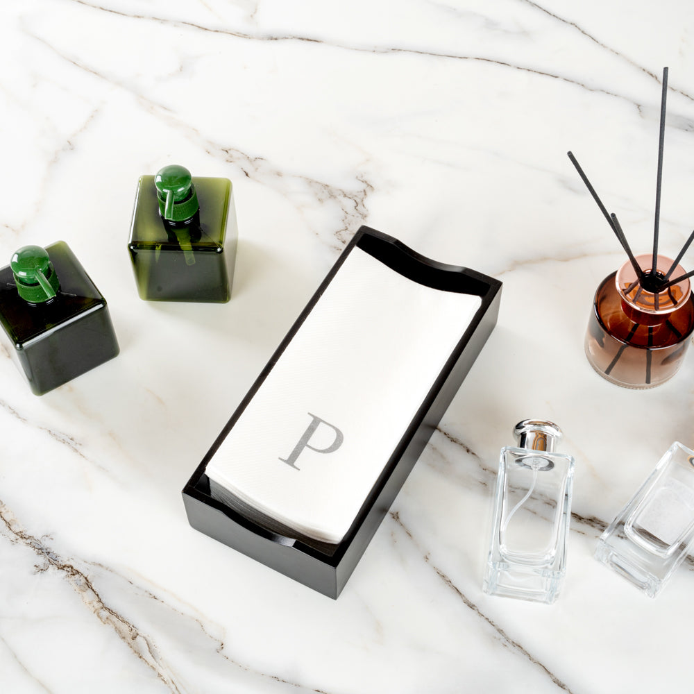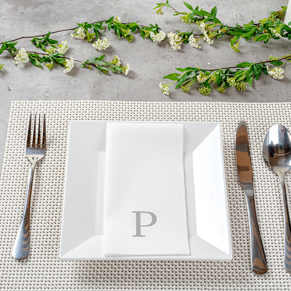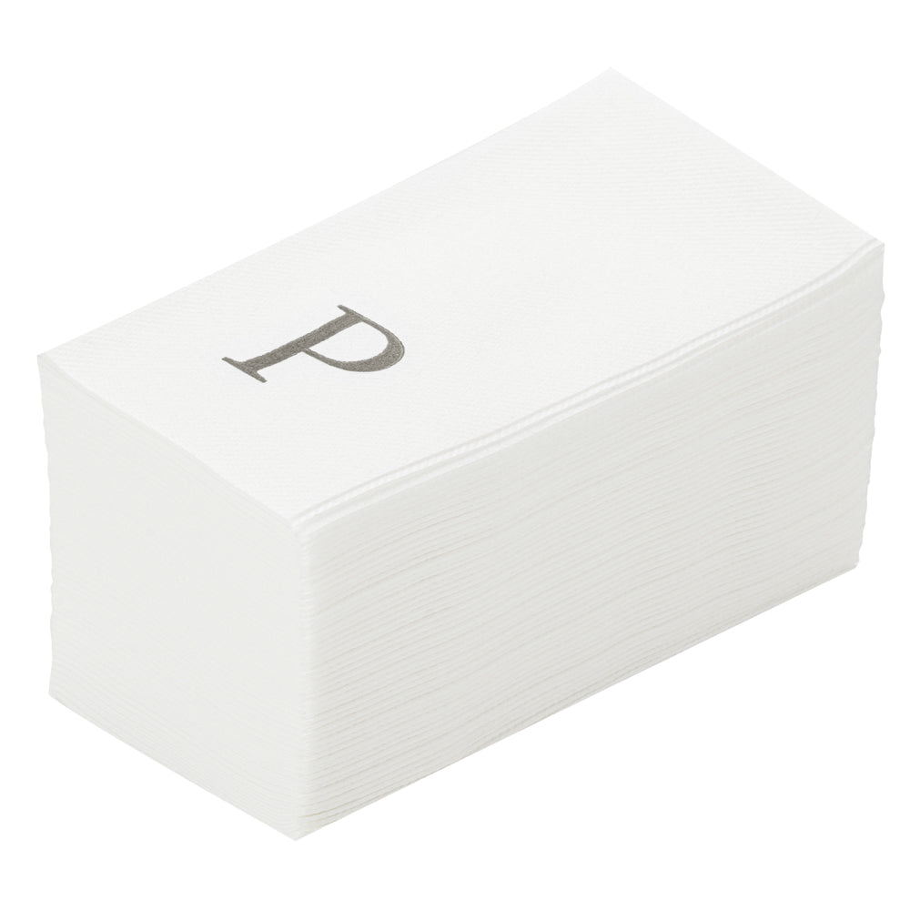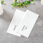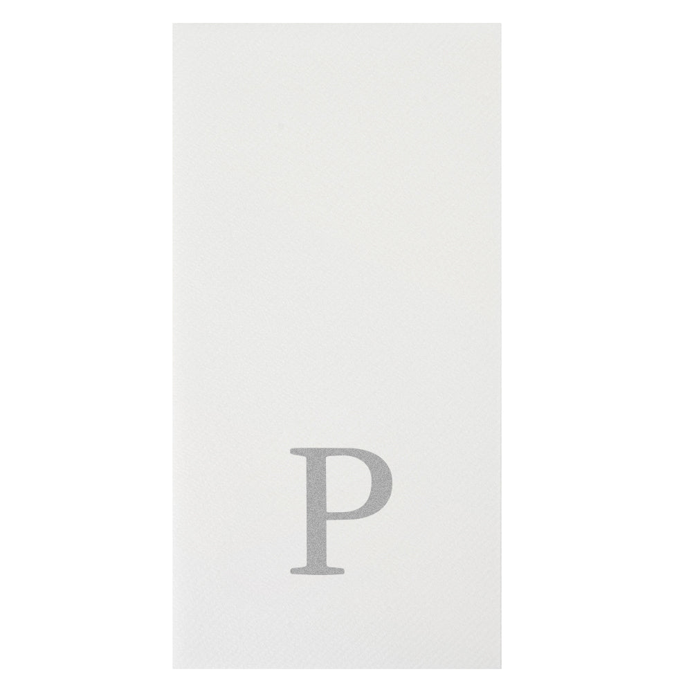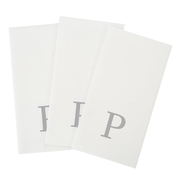SILVER LETTER P PAPER LINEN-FEEL GUEST TOWEL/NAPKIN - SANS SERIF FONT