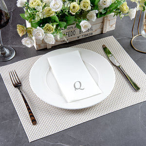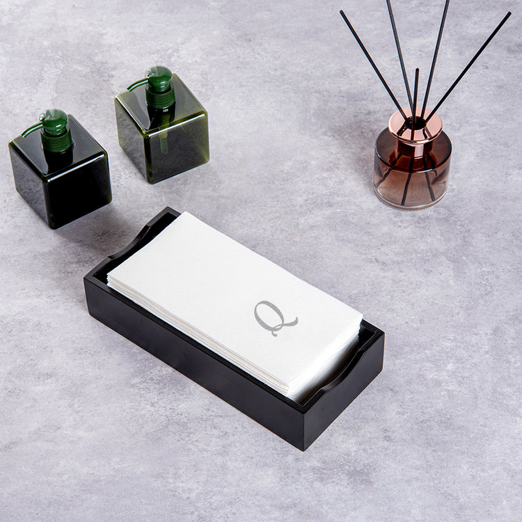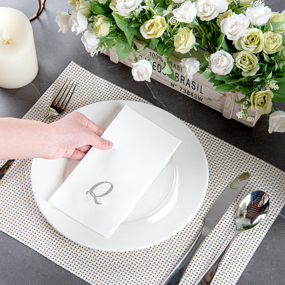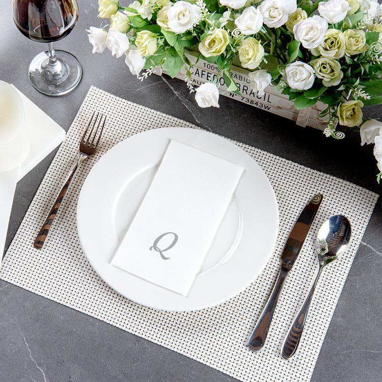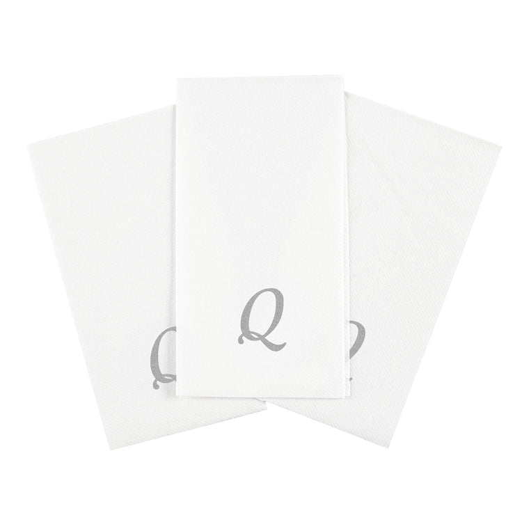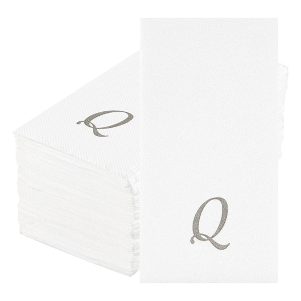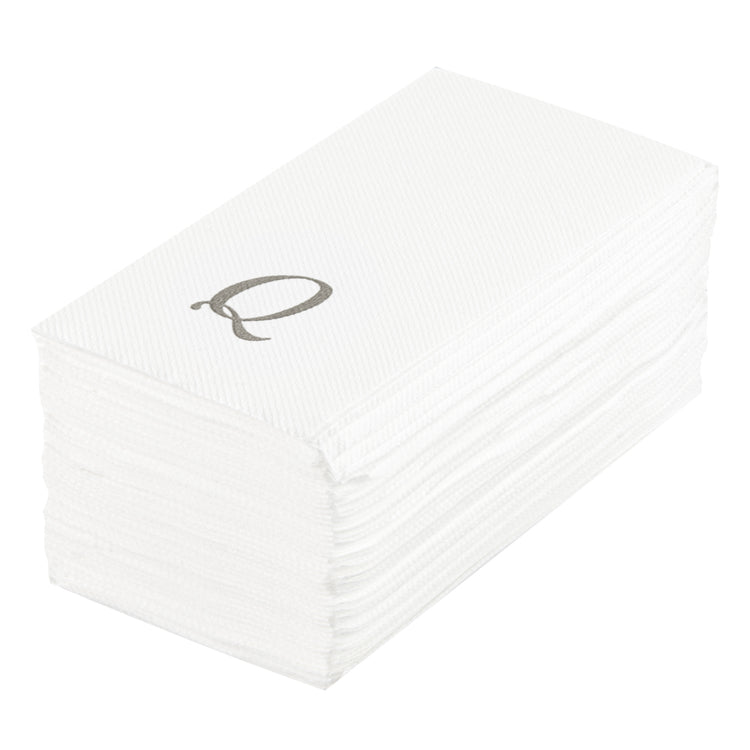 SILVER LETTER Q PAPER LINEN-FEEL GUEST TOWEL/NAPKIN - CURSIVE FONT