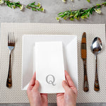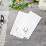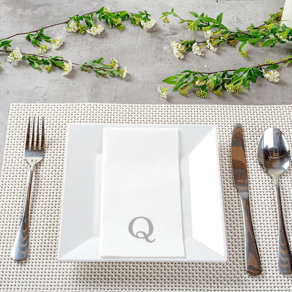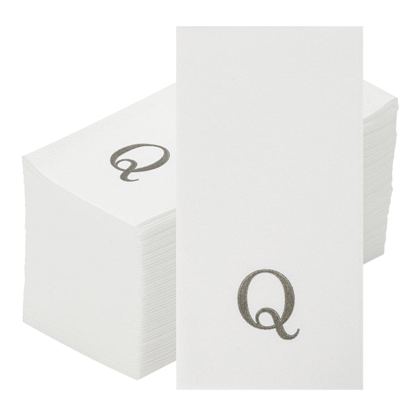 SILVER LETTER Q PAPER LINEN-FEEL GUEST TOWEL/NAPKIN - SANS SERIF FONT