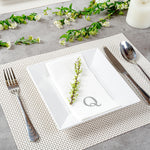 Enhance upscale dining experiences effortlessly with Luxenap Rectangle Silver Letter Q White Paper Linen-Feel Guest Towel / Napkins. These air-laid napkins provide a soft, linen-like feel, ensuring guest comfort and a luxurious atmosphere in your restaurant or event venue. The elegant silver letter 'Q' design adds a personalized and sophisticated touch, ideal for weddings and fine dining settings. With generous dimensions of 15.75 inches by 7.87 inches, these napkins offer ample coverage, making them practical for any meal service. As biodegradable and compostable disposable napkins, they support eco-friendly dining practices, appealing to environmentally conscious establishments. The airlaid design enhances absorbency, effectively preventing spills and maintaining table cleanliness. Elevate your table aesthetics with the silver printing that complements various event themes. Sold in a 2000 count box.
