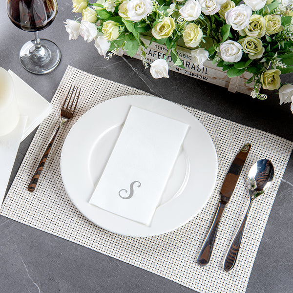 SILVER LETTER S PAPER LINEN-FEEL GUEST TOWEL/NAPKIN - CURSIVE FONT