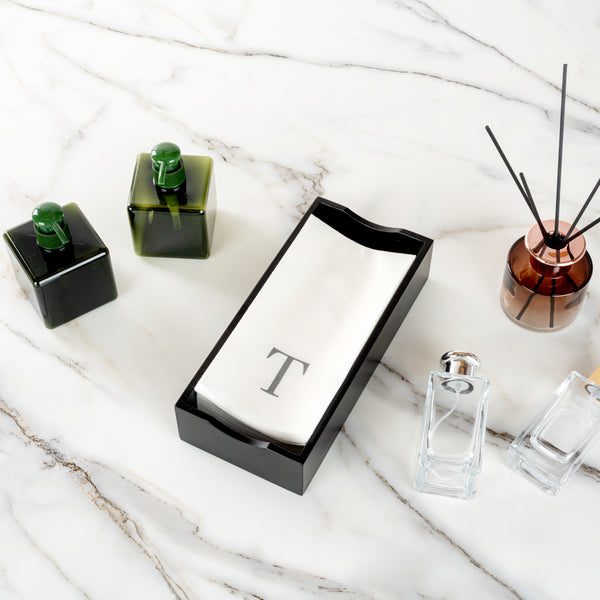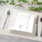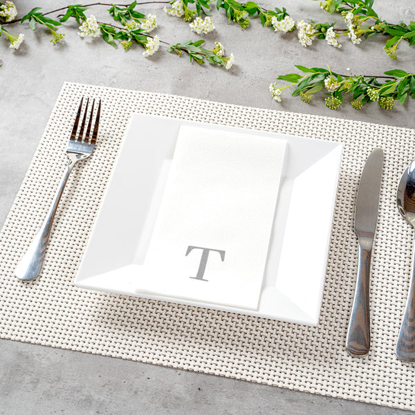 SILVER LETTER T PAPER LINEN-FEEL GUEST TOWEL/NAPKIN - SANS SERIF FONT