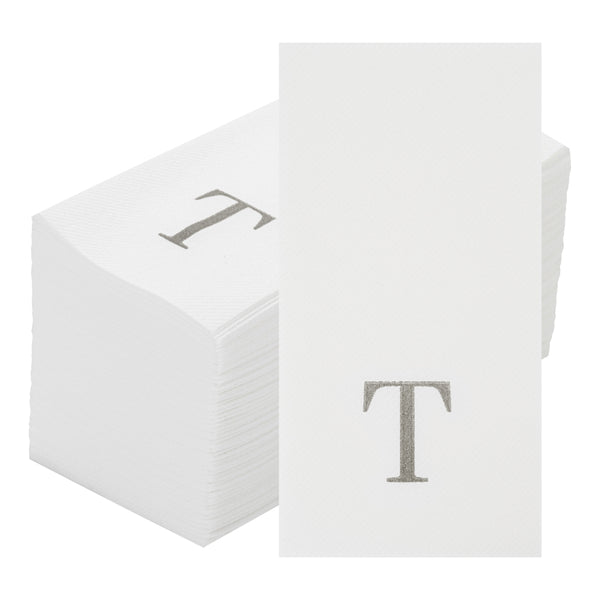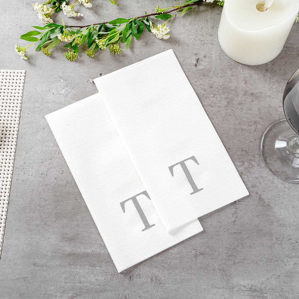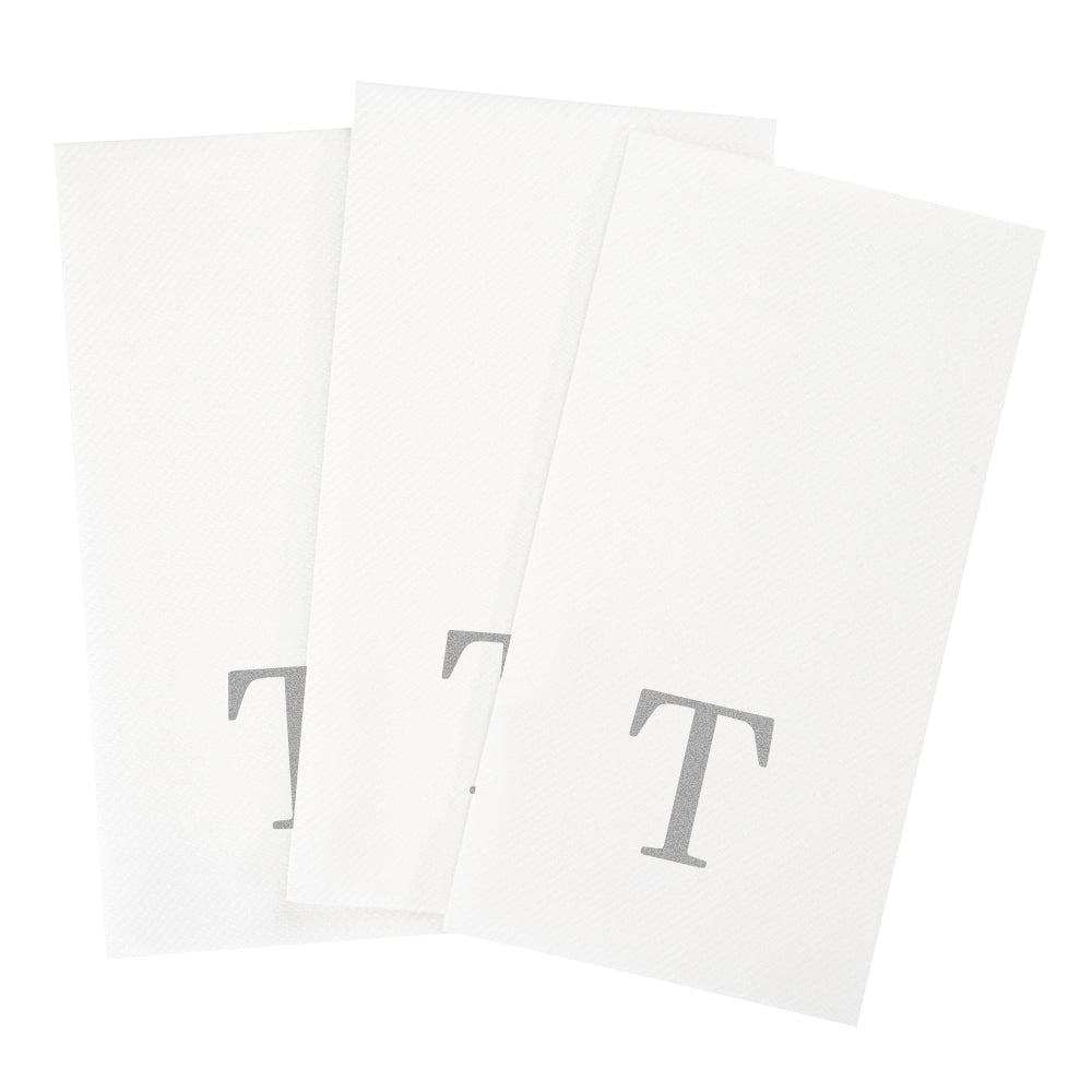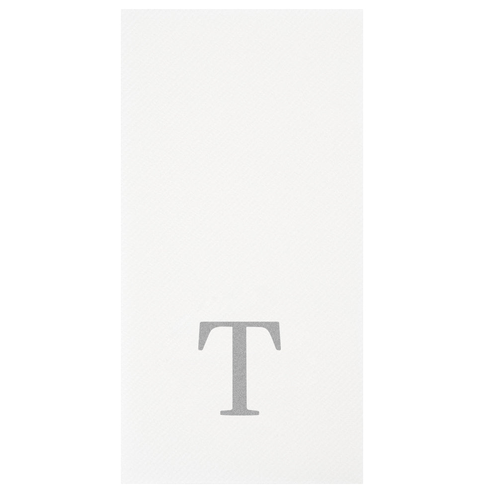 SILVER LETTER T PAPER LINEN-FEEL GUEST TOWEL/NAPKIN - SANS SERIF FONT