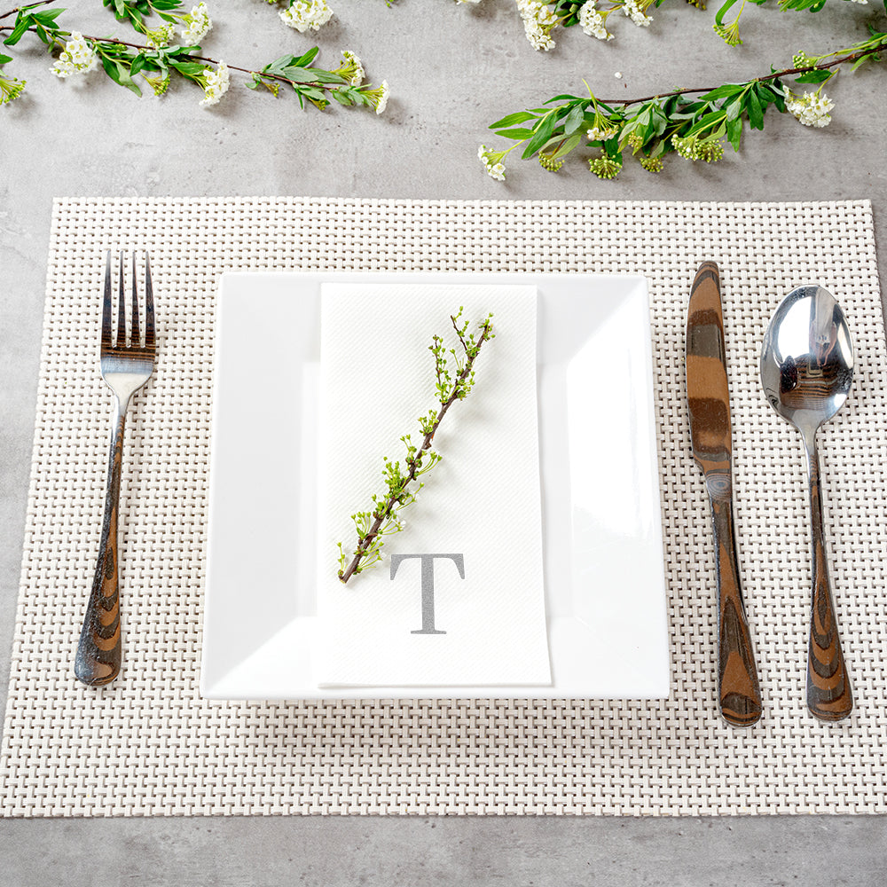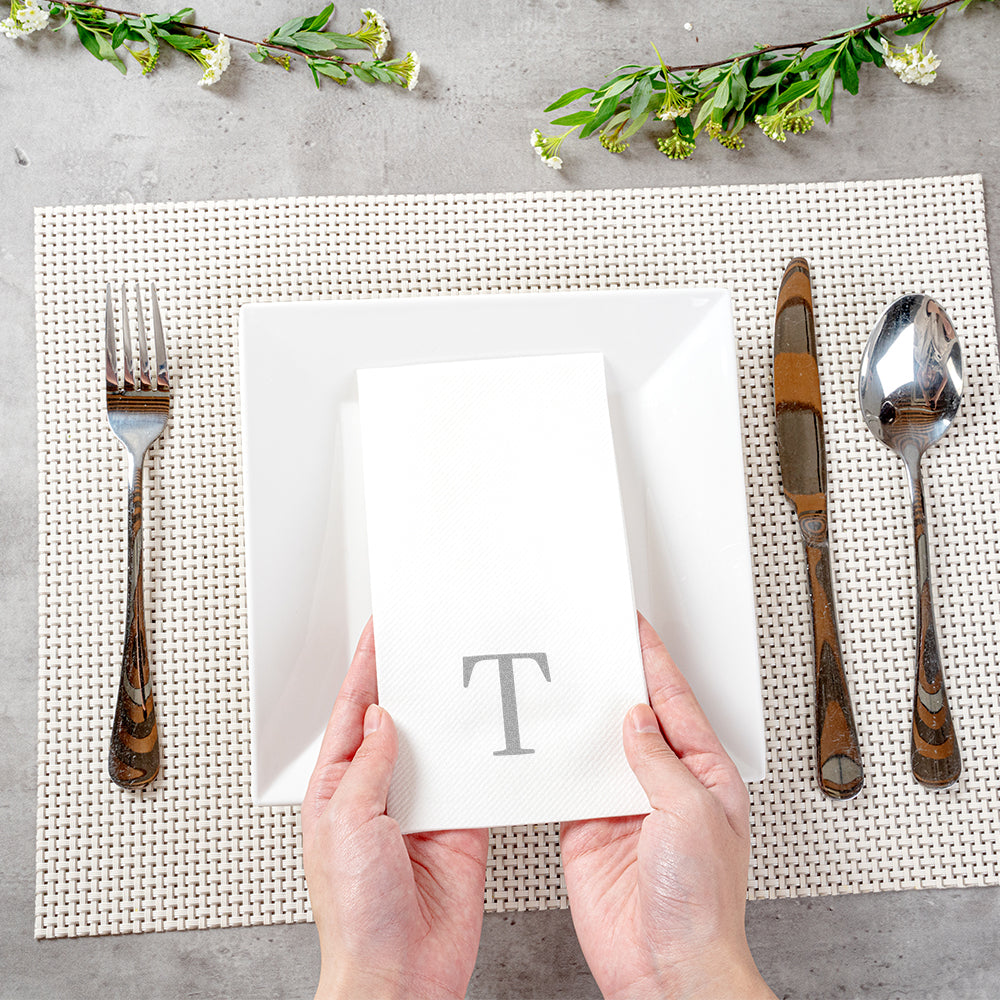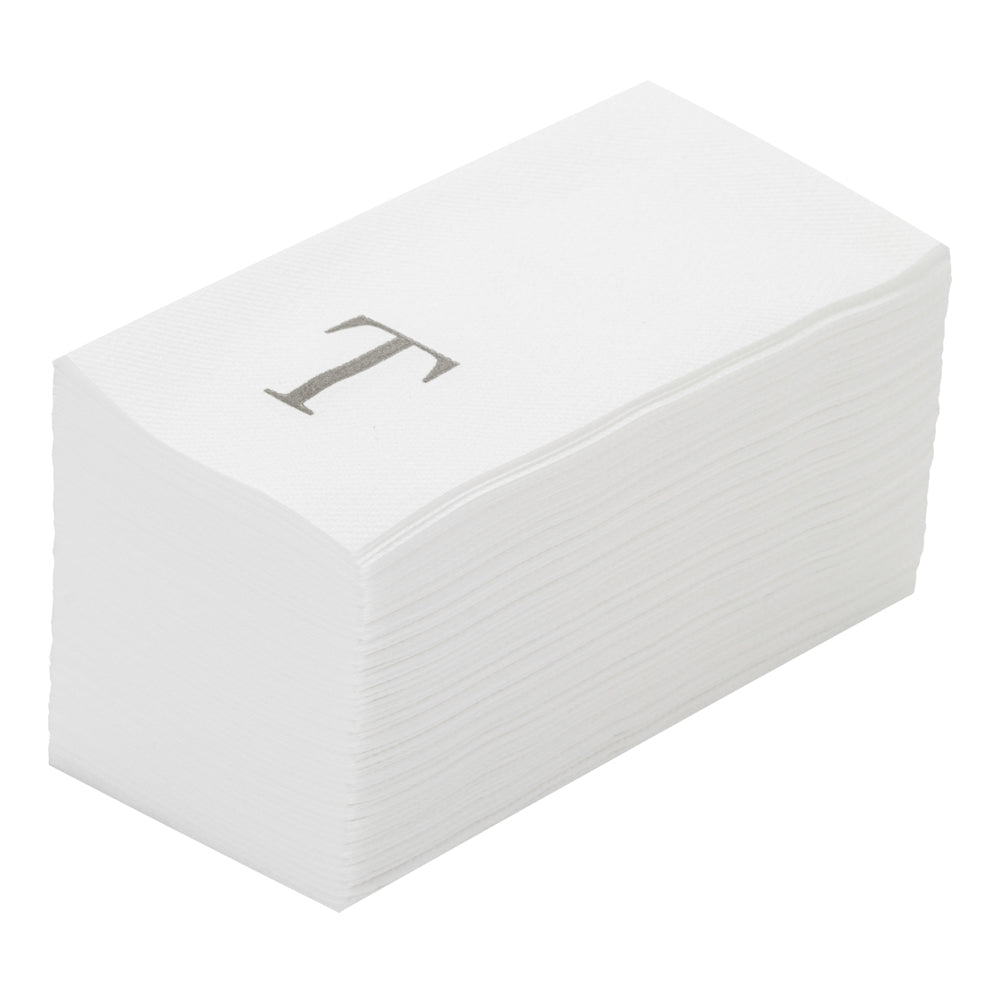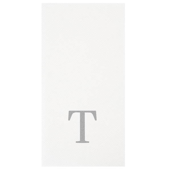 SILVER LETTER T PAPER LINEN-FEEL GUEST TOWEL/NAPKIN - SANS SERIF FONT