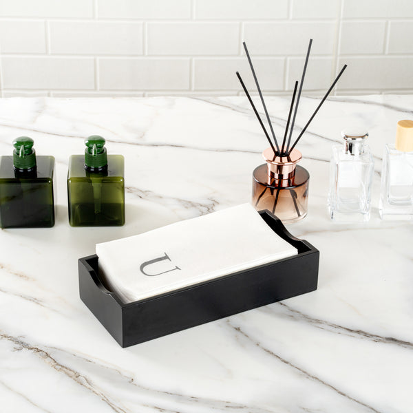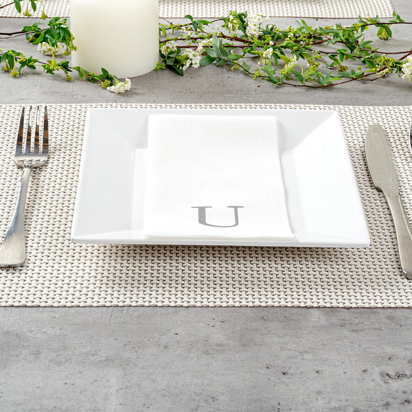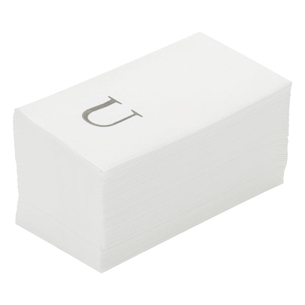 SILVER LETTER U PAPER LINEN-FEEL GUEST TOWEL/NAPKIN - SANS SERIF FONT