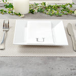 Ensure your dining experience is both elegant and efficient. Luxenap Rectangle Silver Letter U White Paper Linen-Feel Guest Towel / Napkin features a luxurious linen-like texture crafted from air-laid paper, which enhances guest comfort and adds sophistication to upscale dining environments. Its silver letter 'U' design elevates table settings, making it ideal for fine dining and special events. This guest towel napkin offers generous dimensions of 15.75 inches by 7.87 inches, providing ample coverage for a variety of dining occasions. The airlaid texture ensures superior absorbency, effectively tackling spills and maintaining cleanliness. Additionally, its compact folded design saves valuable storage space in busy kitchen areas. Embrace the convenience of a disposable napkin that combines style and practicality, perfect for any refined event. Sold in a 2000 count box.