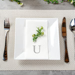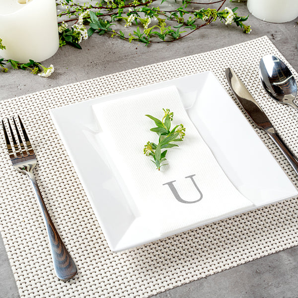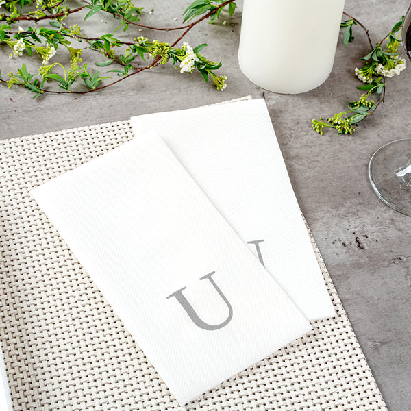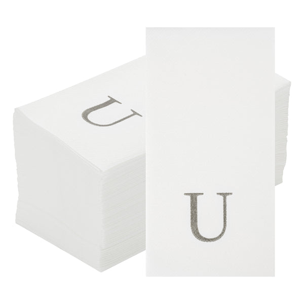 SILVER LETTER U PAPER LINEN-FEEL GUEST TOWEL/NAPKIN - SANS SERIF FONT