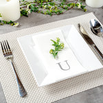 Ensure your dining experience is both elegant and efficient. Luxenap Rectangle Silver Letter U White Paper Linen-Feel Guest Towel / Napkin features a luxurious linen-like texture crafted from air-laid paper, which enhances guest comfort and adds sophistication to upscale dining environments. Its silver letter 'U' design elevates table settings, making it ideal for fine dining and special events. This guest towel napkin offers generous dimensions of 15.75 inches by 7.87 inches, providing ample coverage for a variety of dining occasions. The airlaid texture ensures superior absorbency, effectively tackling spills and maintaining cleanliness. Additionally, its compact folded design saves valuable storage space in busy kitchen areas. Embrace the convenience of a disposable napkin that combines style and practicality, perfect for any refined event. Sold in a 50 count box.